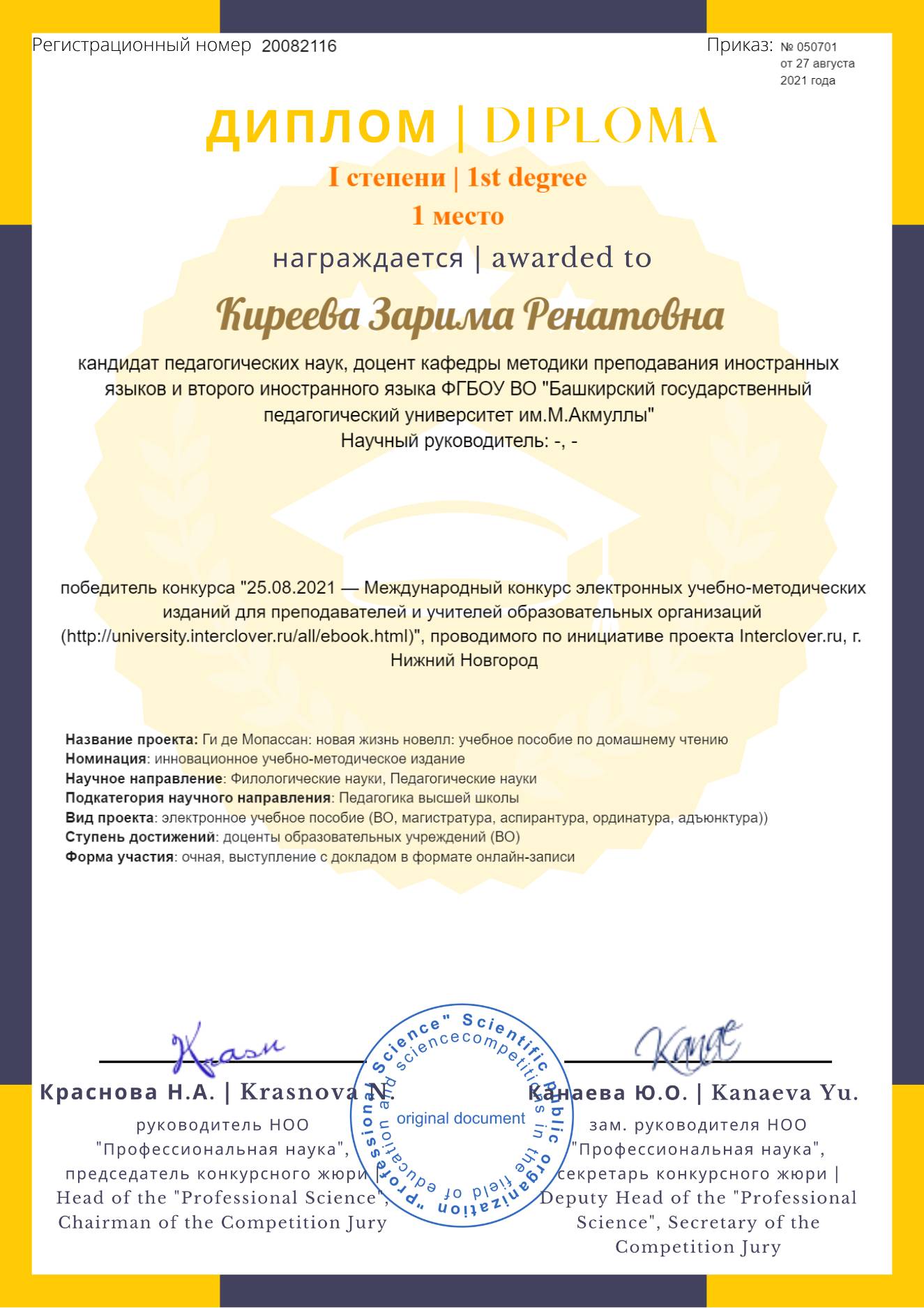Преподаватели кафедры методики преподавания иностранных языков и второго иностранного языка Х.Х. Галимова, З.Р. Киреева и Р.Ф. Хасанова стали победителями Международного конкурса электронных учебно-методических изданий, который проводился по инициативе организации НОО "Профессиональная наука" в рамках конкурсного проекта Interclover.ru. Жюри рассмотрело 246 работ из разных российских и зарубежных образовательных организаций.