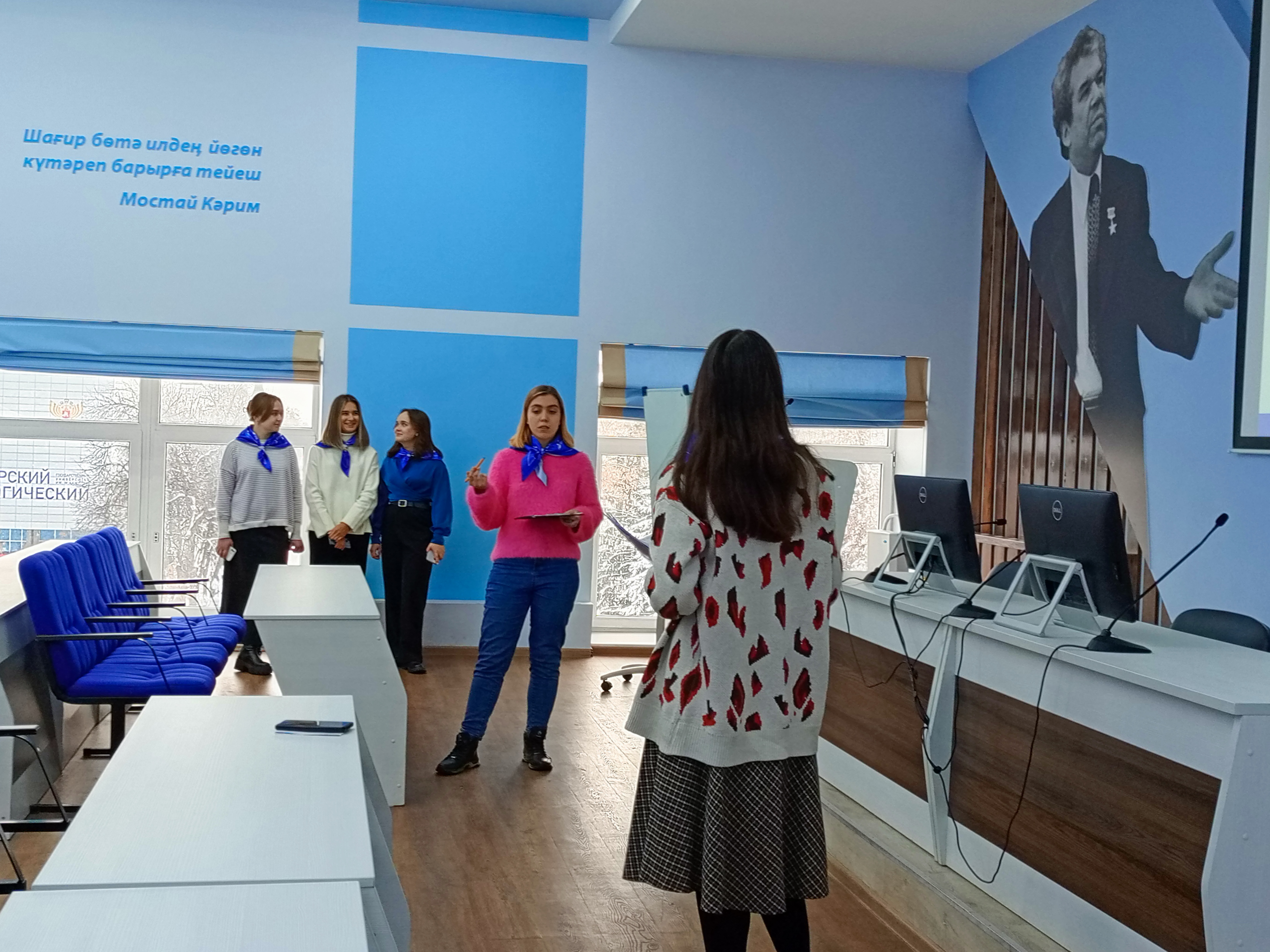 В ходе встречи студенты Анастасия Кобызева и Айгиза Гаянова рассказали первокурсникам о секретах французского языка, о возникновении диакритических знаков и об особенностях правильного произношения. Азалия Ахунова и Карина Ибрагимова провели познавательный квест об основных символах Франции и ее столице городе Париже. Гузель Галина и Элина Халиуллина выстроили эффективное интерактивное взаимодействие с участниками мероприятия, предложив им рекомендации и полезные советы по дальнейшему успешному освоению образовательных программ.