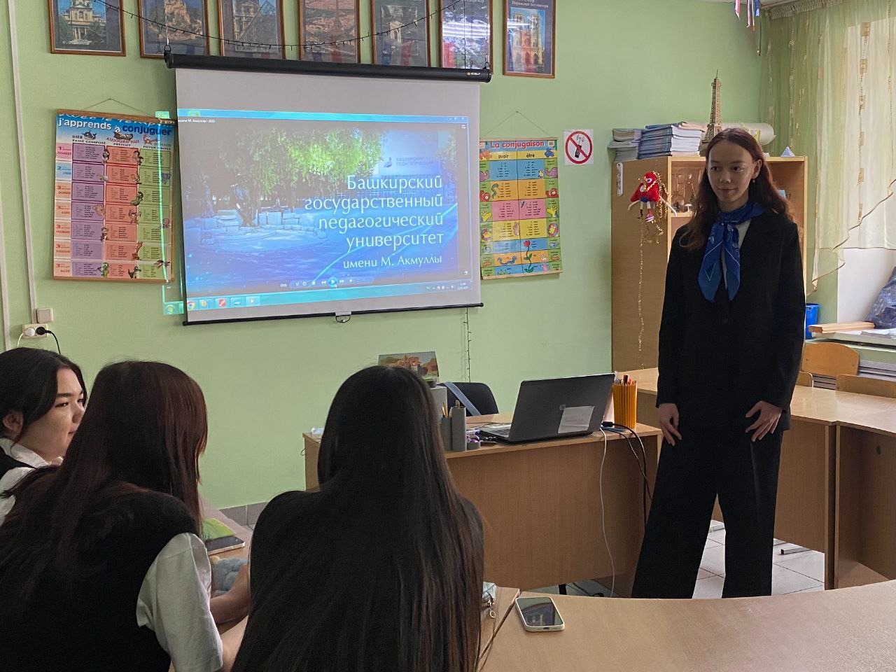В рамках педагогической практики по французскому языку студенты 5 курса ИФОМК Юнусова Алия и Сагитова Руфина провели профориентационное мероприятие «Мой путь к профессии» для обучающихся 10 класса гимназии №39 им. А.Ш. Файзуллина. Целью мероприятия было помочь старшеклассникам определиться с выбором будущей профессии и познакомить с педагогическим университетом.