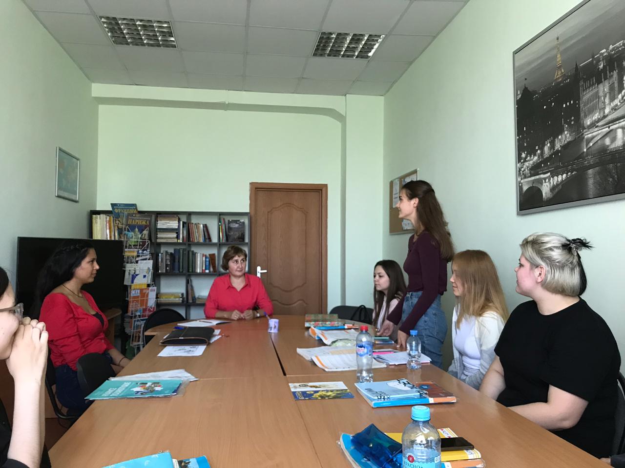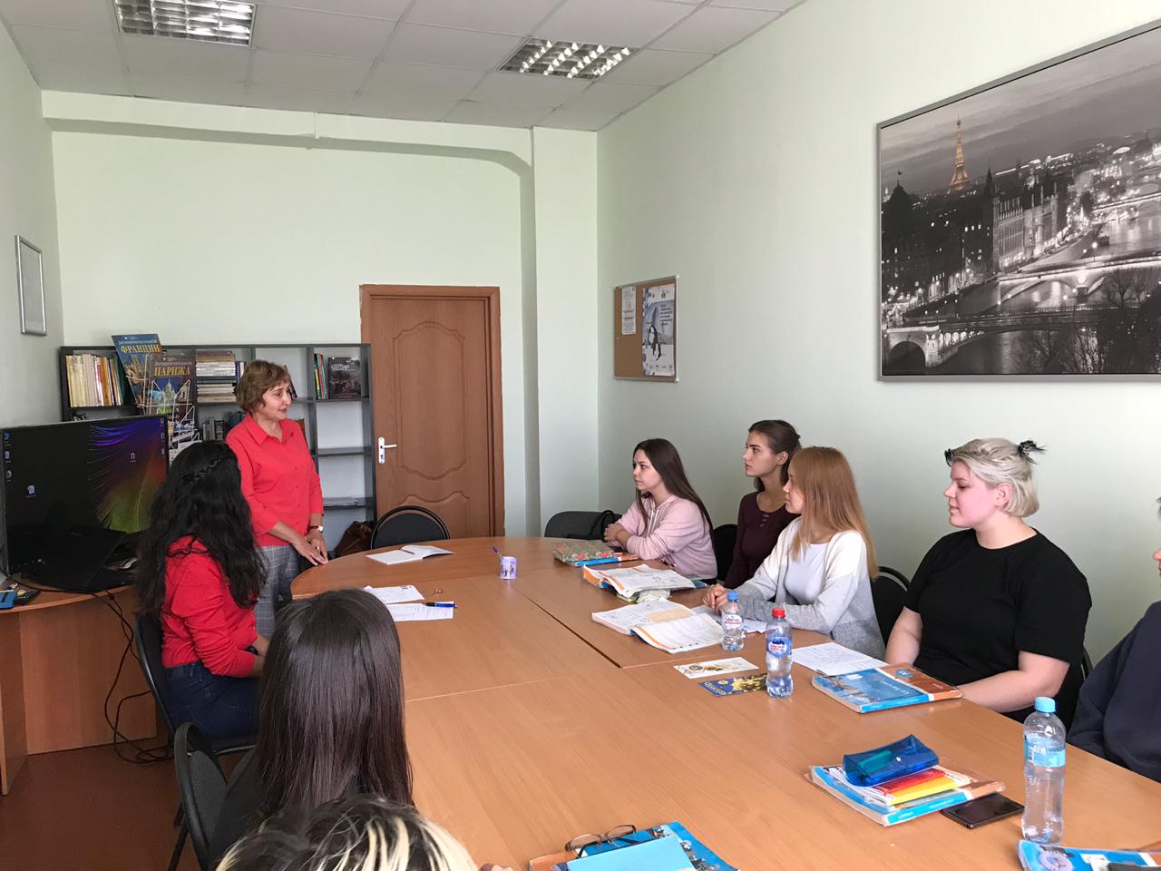 Со студентами 2 курса Селина провела квиз о Франции, в ходе которого они узнали много нового из истории страны и об образе жизни современных французов. Будущих переводчиков - медиаторов межкультурной коммуникации интересовало также восприятие Селиной наших реалий, поэтому они спрашивали её отношение к нашим обычаям, нашей кухне и природе. Общение получилось душевным, позитивным. В ответ Анна Денисова прочитала стихотворение С.Есенина, вся группа спела песню на русском языке под аккомпанемент гитары.