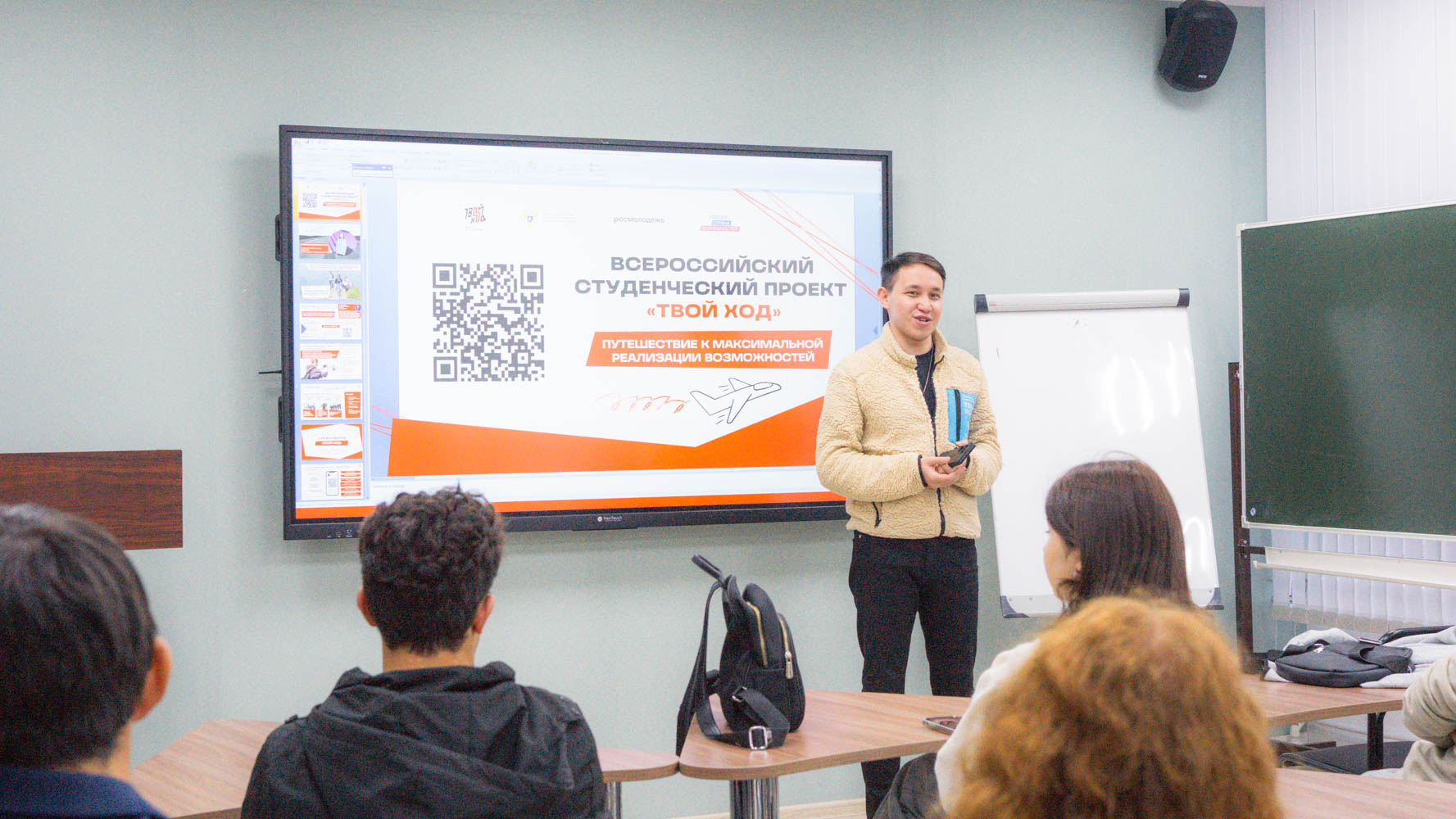 Мероприятие прошло в формате дискуссии, в ходе которой члены региональной команды сообщества «Твой ход» рассказали студентам об основных направлениях и возможностях проекта. Особое внимание было уделено треку «Первопроходец», ориентированному на поддержку и активизацию студенческой деятельности первокурсников.