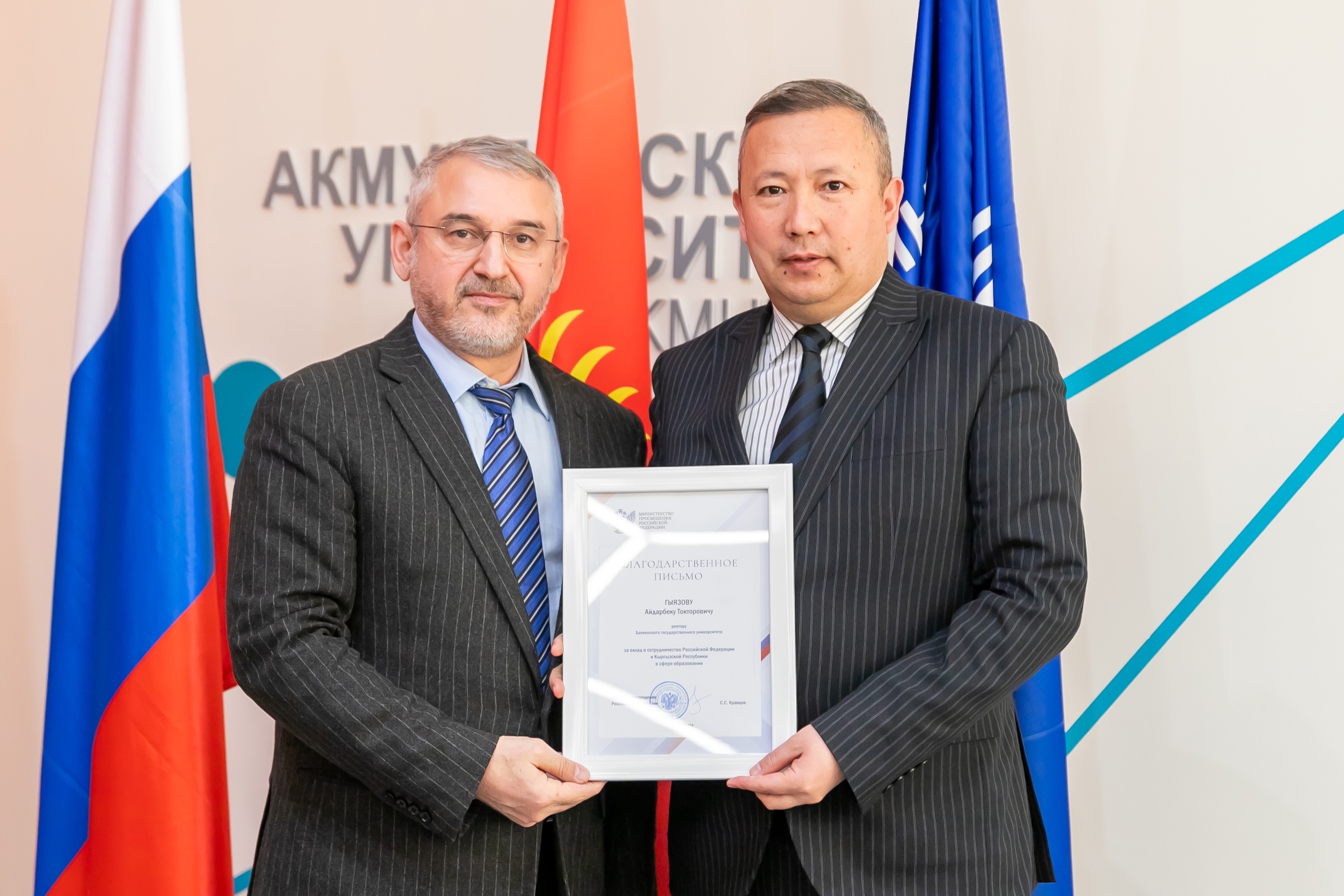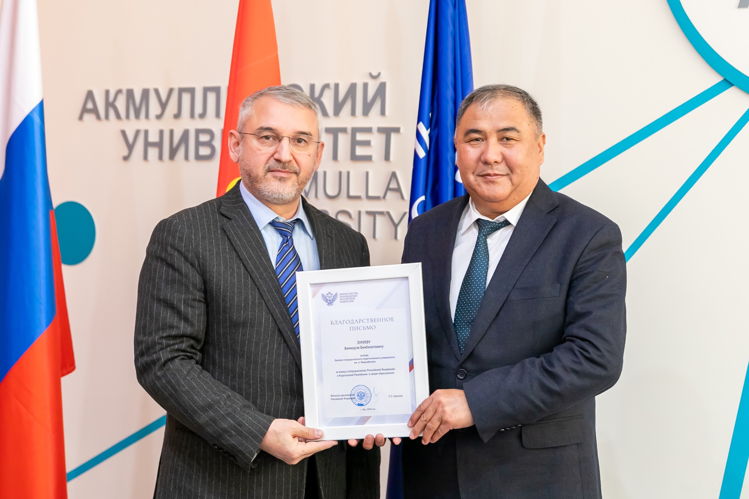 В завершении встречи Усман Рассуханов вручил благодарственные письма Министерства просвещения России за вклад сотрудничество двух стран в сфере образования Аскарбеку Иманбаеву, Бекмурзе Зулуеву и Айдарбеку Гыязову.