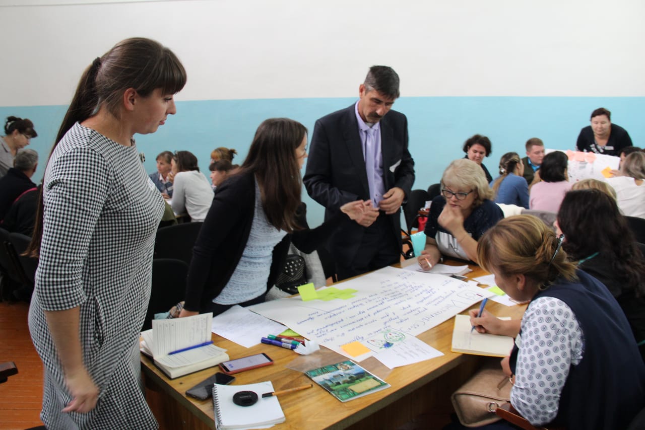 В обновленную во время летних каникул школу № 2 с. Шаран еще не пришли ученики, но атмосфера в ней была творческой и максимально  эмоциональной.  В ходе однодневного марафона лучшие педагоги района создавали образ будущего, ознакомились с Национальным проектом «Образование» и генерировали идеи.  В ходе «проектного генератора» в копилке педагогов появилось 5 социальных проектов, которые они будут реализовывать со школьниками в рамках субботней активности.