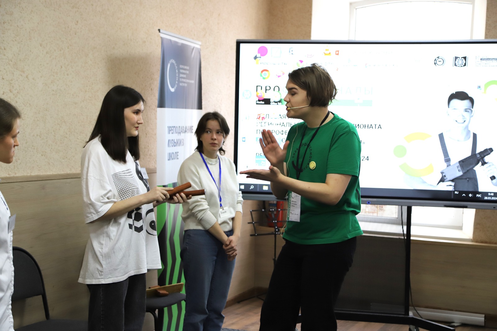 В первый конкурсный день среди участников чемпионата состоялся  творческий баттл. Студенты столкнулись с пятью разнообразными заданиями. Испытание началось с самопрезентации, где каждый смог показать экспертам-наставникам свои таланты. Затем последовали музыкальная викторина, исполнение детской песни, увлекательная игра на фортепиано по цифровке.