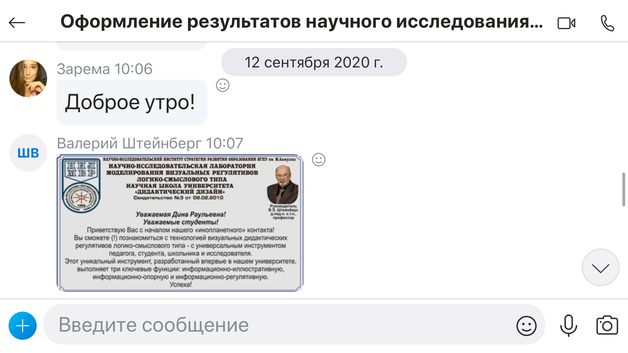 5 сентября 2020 года  в рамках сотрудничества кафедр БГПУ им. М.  Акмуллы с научно-исследовательской лабораторией моделирования регулятивов логико-смыслового типа НИИ стратегии развития образования был дан старт серии онлайн семинаров с целью повышения уровня научных работ студентов бакалавриата  направления подготовки  44.03.05 «Педагогическое образование».