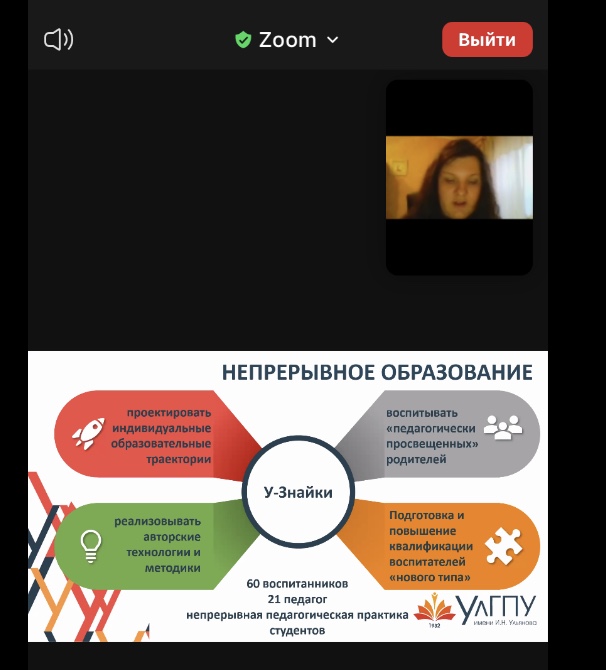 24 февраля 2021 года с 17.00 до 18:30 (мск) сотрудники НИИ СРО И.Р.Левина и Д.Р. Фатхулова приняли участие в четвертой встрече методологического семинара Консорциума «Развитие личностного потенциала в образовании». Цикл встреч, посвященных презентации исследовательских заделов и зон научного интереса участников Консорциума продолжила презентация Ульяновского государственного педагогического университета им. И.Н. Ульянова. Тема семинара: «Изучение развития личностного потенциала обучающихся в различных типах образовательных сред».