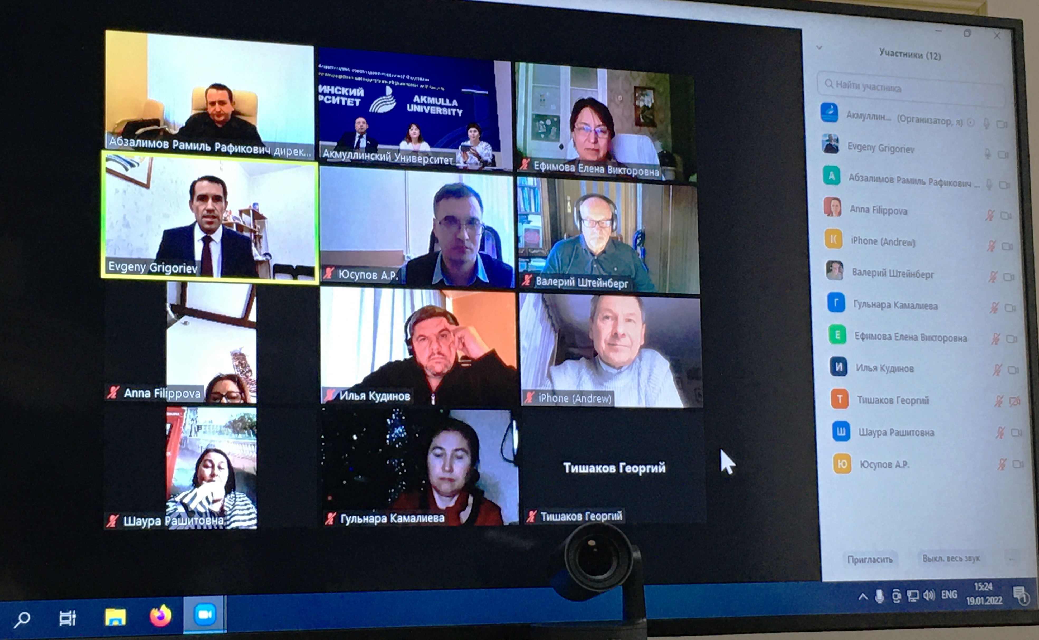 19 января 2022 года состоялся ученый совет  НИИ стратегии развития образования в котором принял участие Абзалимов Р. Р.,  директор центра  оценки профессионального мастерства   и квалификации педагогов, Григорьев Е.Н., декан педагогического факультета Сибайского филиала БашГУ, профессорско– преподавательский состав института физики, математики, цифровых и нанотехнологий БГПУ: Юсупов А.Р., Дорофеев А.В., Филиппова А.С. , Васильева Л.И., Кудинов И.В., заведующий научно-исследовательской лабораторий профессор Штейнберг В.Э., аспиранты.