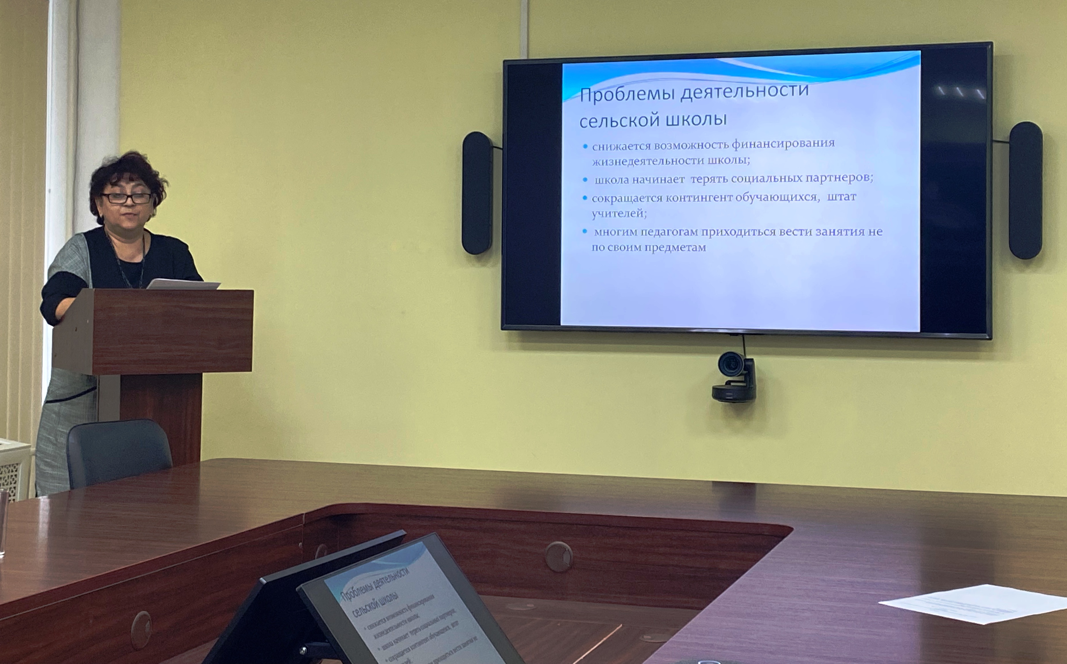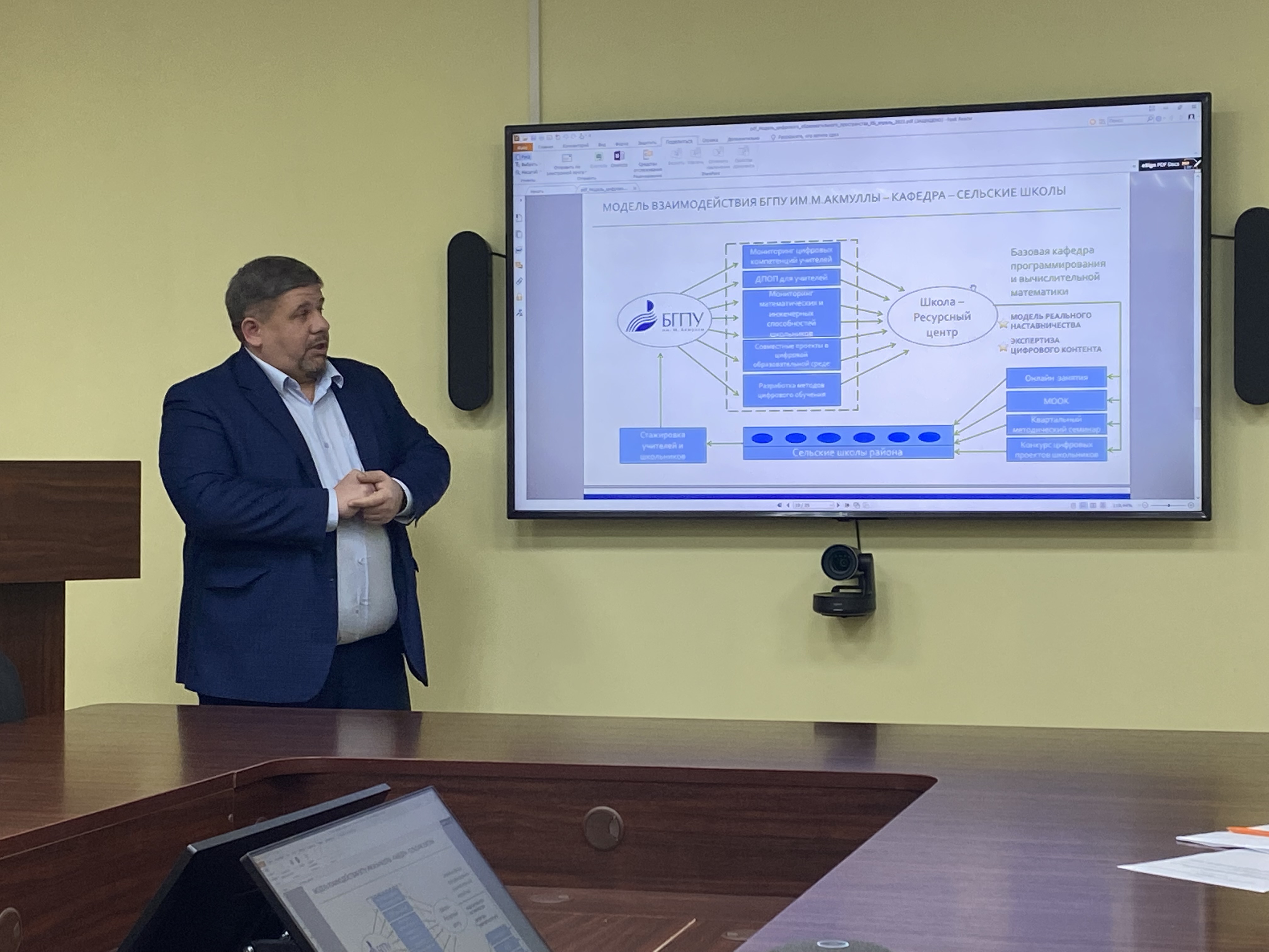 На заседании  выступили с докладами заведующий кафедрой  программирования и вычислительной техники и куратор направления по научно-методической поддержке сельской школы И.В. Кудинов по модели цифрового образовательного пространства Республики Башкортостан и старший научный сотрудник НИИ Ш.Р. Шакурова по результатам  социологического качественного исследования, проведенного в Кармаскалинском районе республики Башкортостан. Доклады вызвали живой интерес и дискуссию среди участников заседания.