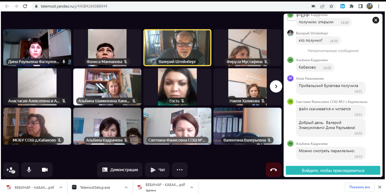 06 апреля 2022 года сотрудники НИИ  В.Э.Штейнберг и Д.Р. Фатхулова провели первый вебинар  на тему: " Дидактический регулятив как эффективный инструмент совершенствования педагогической деятельности, субъектной позиции педагога,   инструмент поддержки учебной деятельности обучающегося" в рамках курсов повышения квалификации учителей Кармаскалинского района Республики Башкортостан.