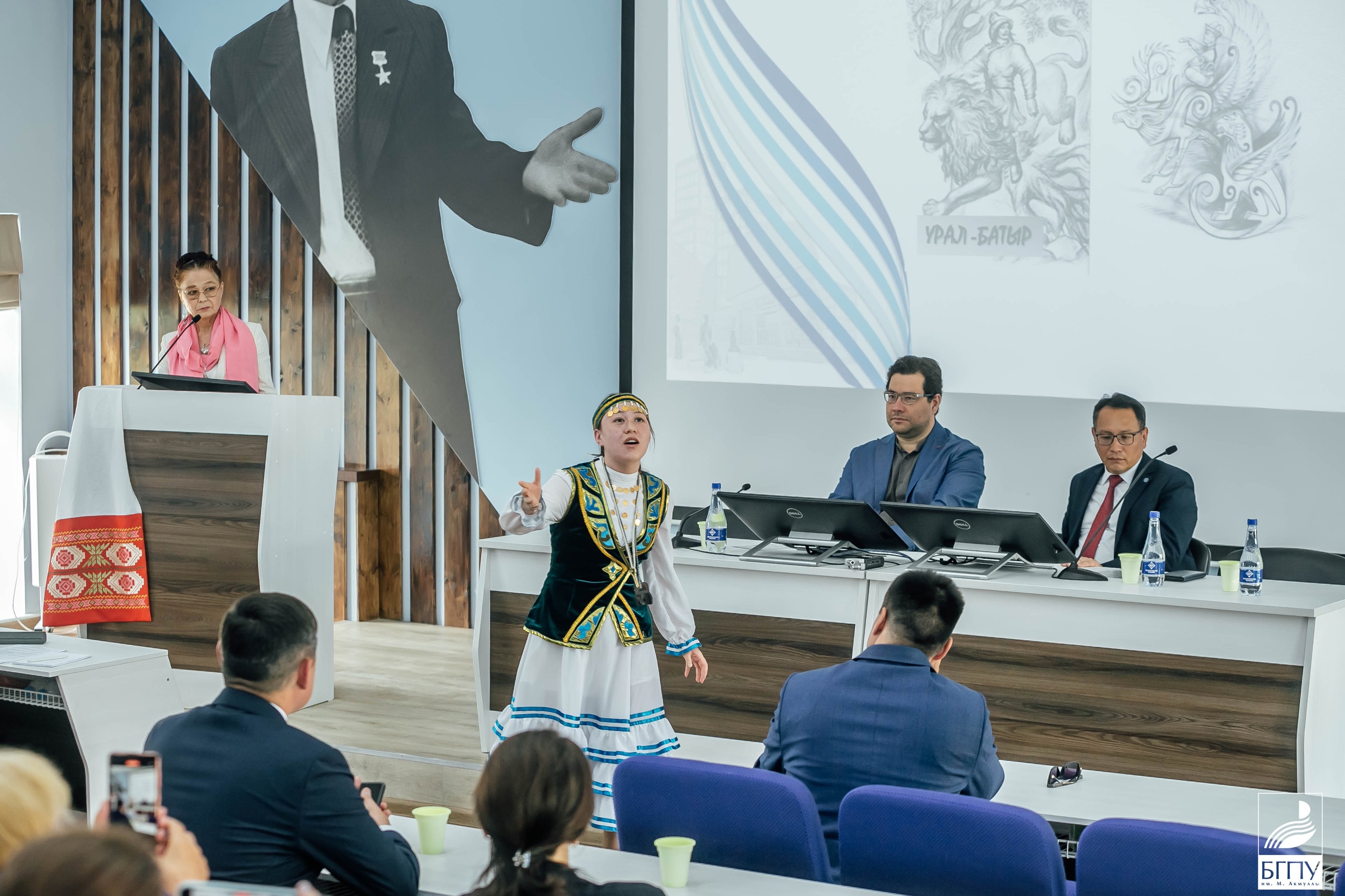 16 июня 2022 года в БГПУ им. М. Акмуллы в аудитории им. Мустая Карима состоялась Международная конференция «Эпос. Время. Народ». Мероприятие прошло в рамках Всероссийского детского и молодежного конкурса-фестиваля сказителей. В работе конференции «Эпос. Время. Народ» выступили председатель Совета ректоров вузов Республики Башкортостан, ректор БГПУ им. М. Акмуллы Салават Сагитов, генеральный директор Республиканского центра народного творчества Артур Алибаков и руководитель Научно-исследовательского центра Башкирского фольклора Розалия Султангареева, всемирно известный, выдающийся сказитель киргизского эпоса «Манас», президент Национальной Академии «Манас» и Чингиза Айтматова Кыргызской Республики, почётный профессор Иссык-Кульского университета имени К. Тыныстанова Талантаалы Бакчиев. На конференции было подписано соглашения о сотрудничестве между БГПУ им. М. Акмуллы и Национальной академией «Манас» и Чингиза Айтматова.