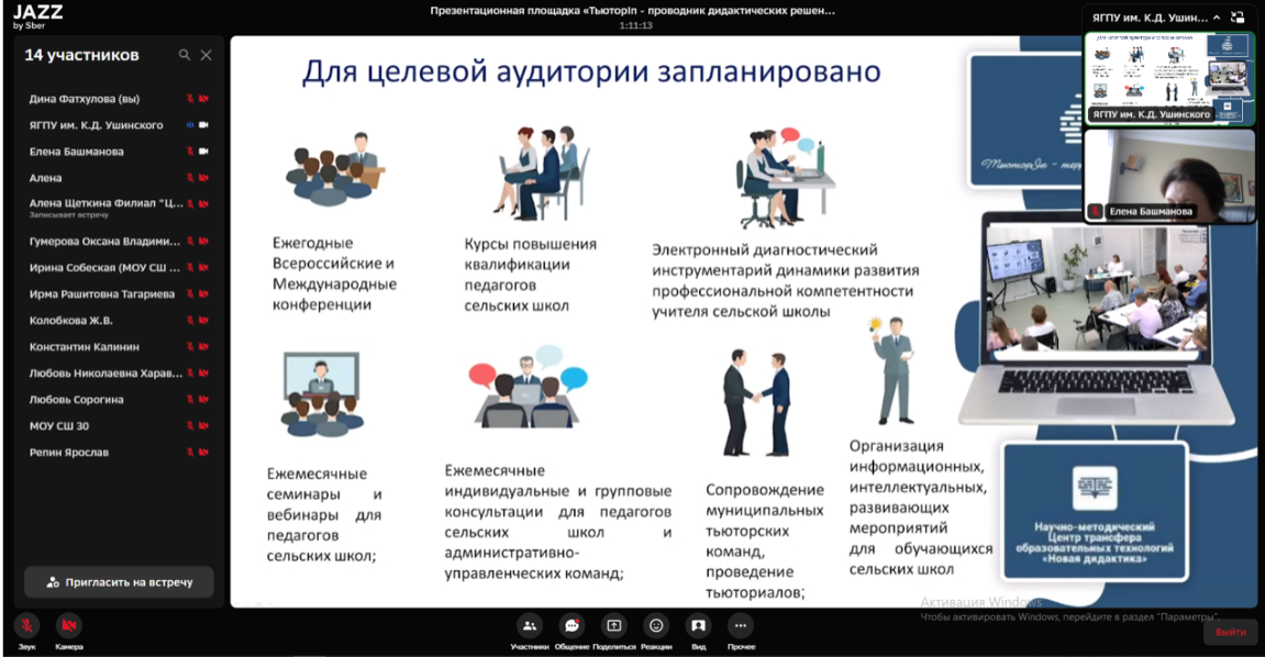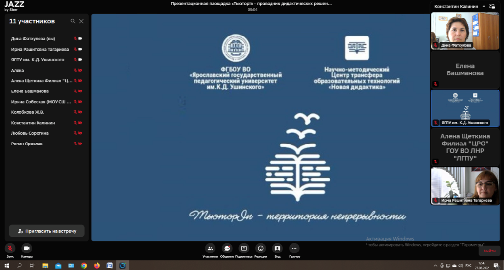 Сотрудники Научно-исследовательского института стратегии развития образования (Тагариева И.Р. и Фатхулова Д.Р.) приняли участие в презентации  Тьюторского центра непрерывного педагогического образования, открытого на базе Федерального центра научно-методического сопровождения педагогических работников "Центр трансфера образовательных технологий "Новая дидактика" ФГБОУ ВО «Ярославский государственный педагогический университет им. К.Д. Ушинского».