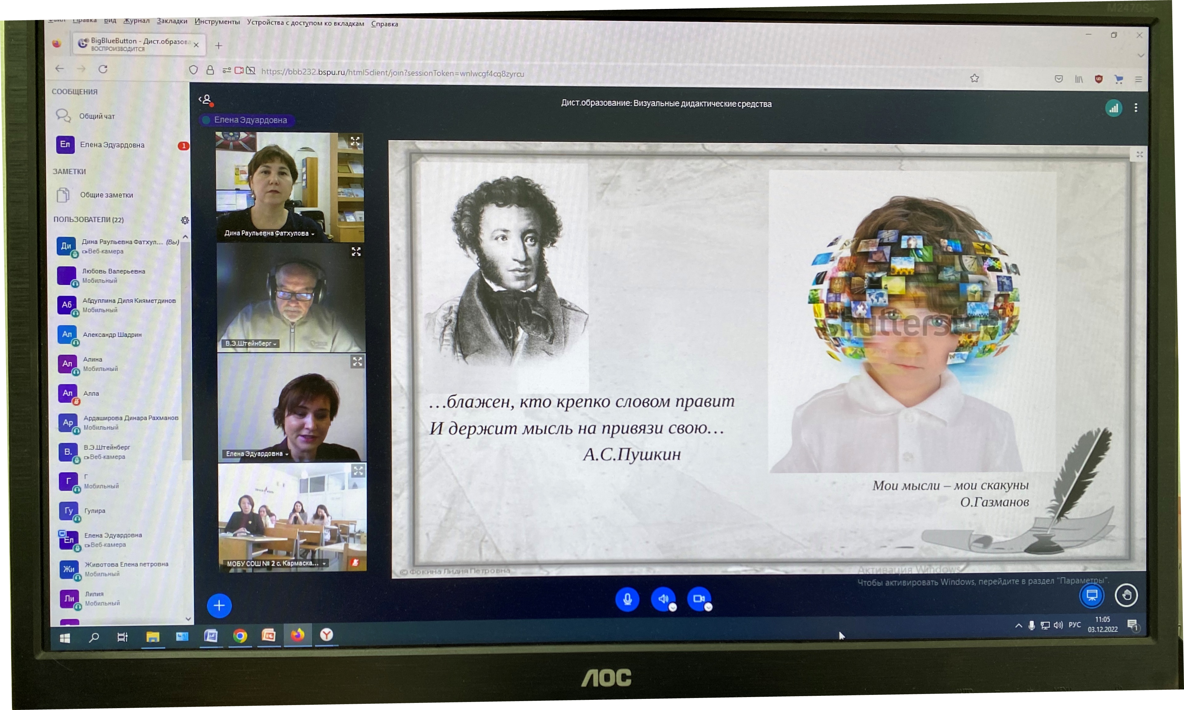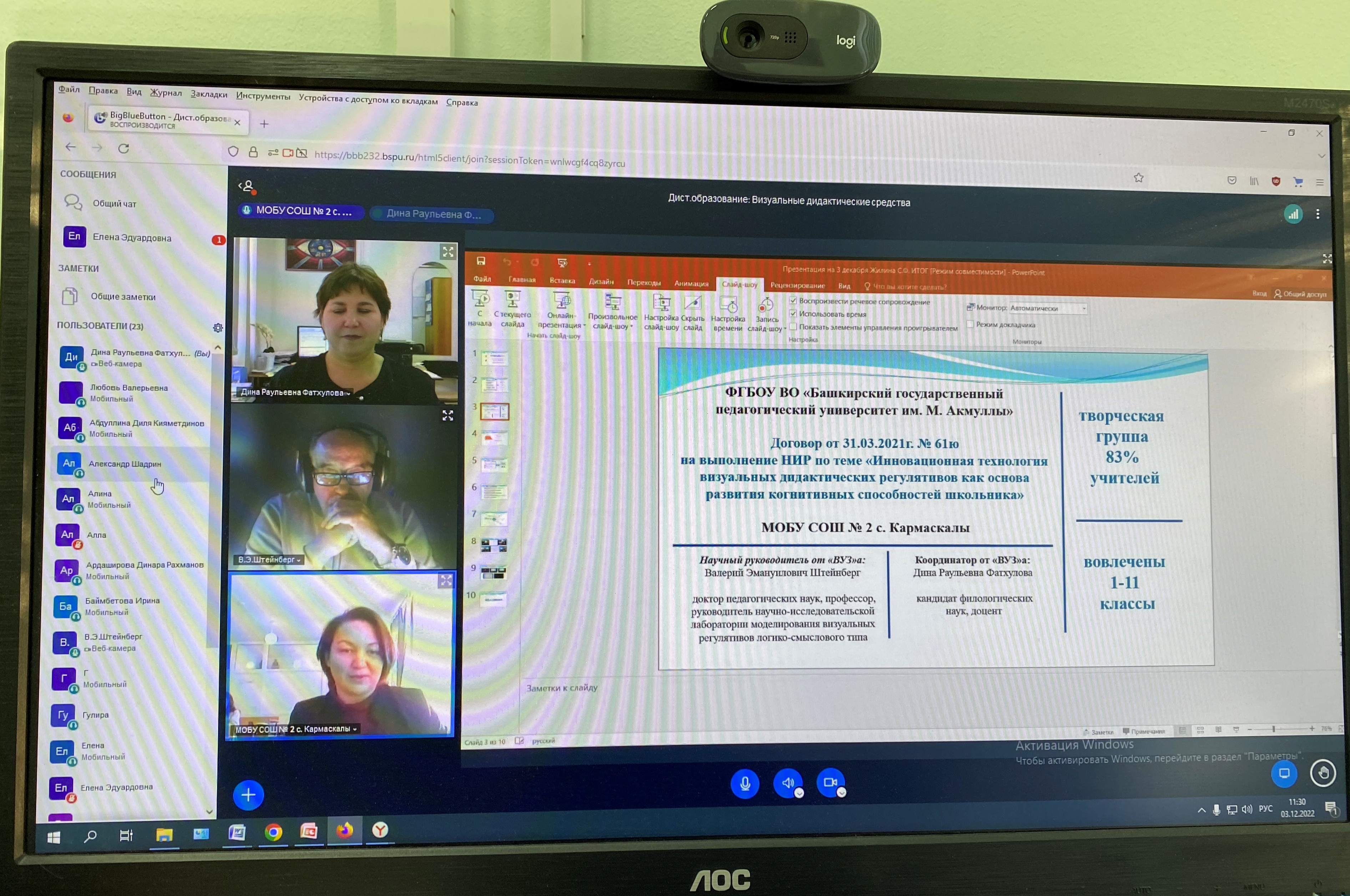 3 декабря 2022 г состоялось заседание секции  «Визуальные дидактические средства регулятивного типа для технологий дистанционного образования», которая проходила в онлайн формате в рамках Всероссийской научно-практической конференции «Дистанционное образование: трансформация, преимущества, риски и опыт». Модератором секции выступил д.пед.н., профессор,  заведующий научно-исследовательской лабораторией моделирования визуальных дидактических регулятивов логико-смыслового типа В.Э. Штейнберг. С докладами выступили Л.В.Вахидова, доцент кафедры педагогики и психологии профессионального образования БГПУ, Е.Э. Миляускас, учитель русского языка и литературы Гимназии с.Кармаскалы, А.Ф. Нямукова, учитель английского языка, СОШ № 9 г. Бирска, С.Ф. Жилина заместитель директора по научно-методичнской работе, учитель математики СОШ №2 с.Кармаскалы.