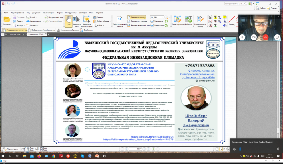7 июня 2023 года  прошел очередной вебинар  НИИ стратегии развития образования   на тему "Средства наглядности на основе логико-смыслового моделирования: принцип,  алгоритм моделирования и  графическое основание логико-смысловых моделей в рамках работы федеральной инновационной площадки БГПУ им. Акмуллы.