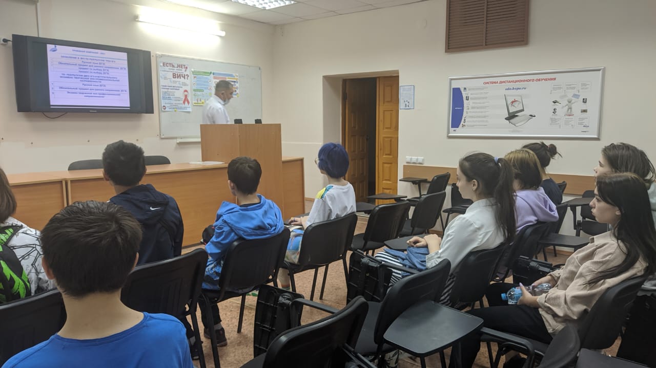 В рамках профориентационного проекта «Курс на вуз» учащиеся выпускных классов имели возможность участвовать в программе, включавшей: