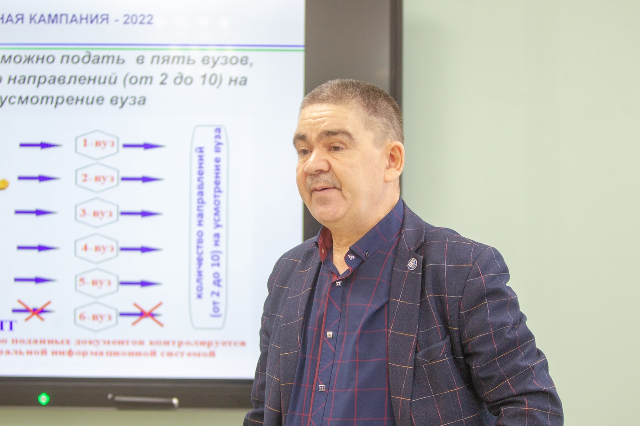 Учителям, которые сопровождали в этот день школьников, директор центра профориентации «5К» Фиданис Тимерханов рассказал о поступлении в Акмуллинский университет, об особенностях приема в 2022 году, направлениях подготовки, целевом обучении, количестве бюджетных мест, сроках подачи документов.