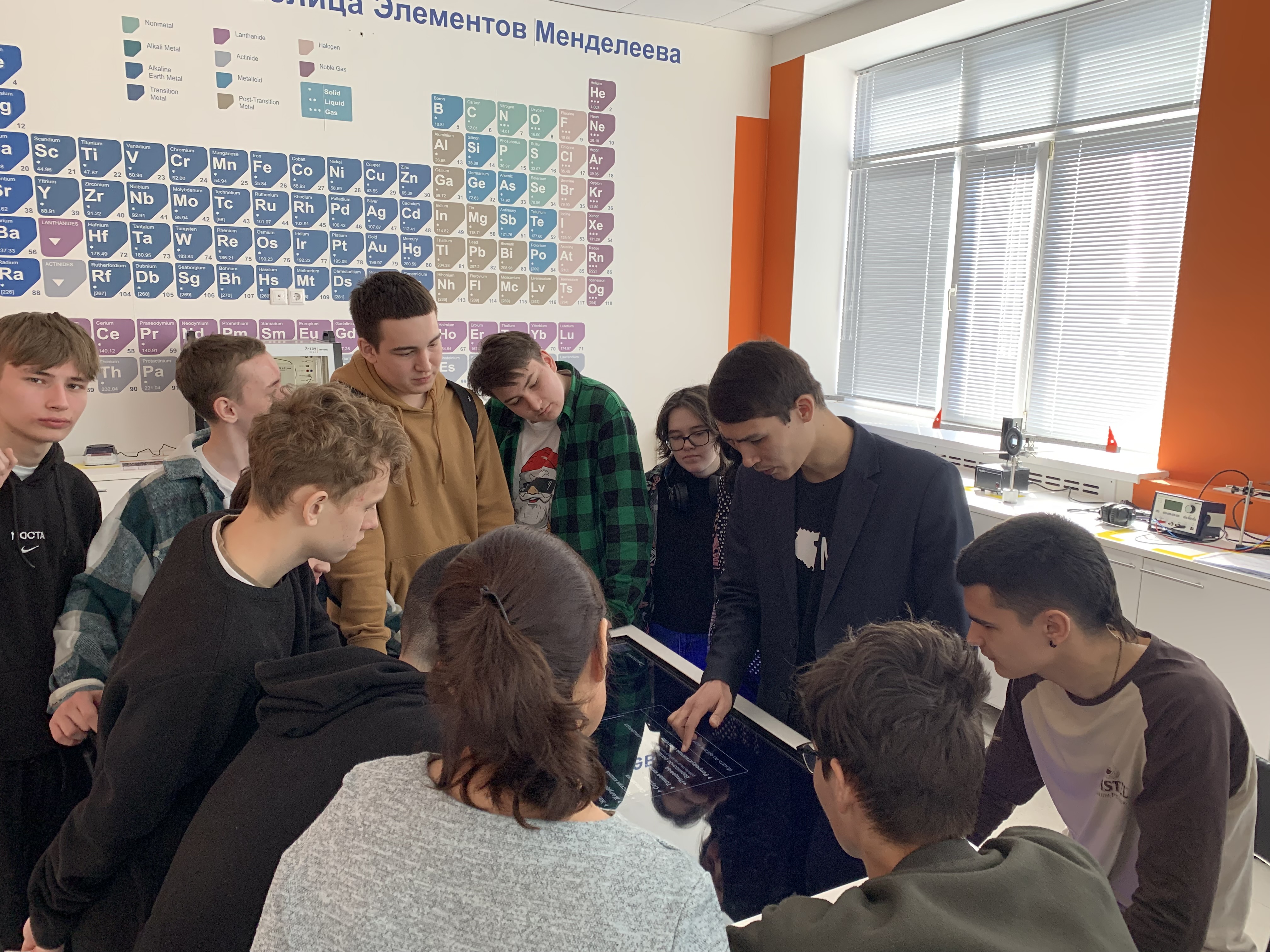 Естественнонаучной зоне ведущий специалист Технопарка Ильяс Янгизитов и лаборант Технопарка Ирина Теплякова познакомили ребят с оборудованием для практических занятий студентов по генетике, аналитической химии, фундаментальной физике, энергетике, рентгенографии и т.д. Особый интерес детей вызвал интерактивный анатомический стол «Пирогов», который помогает подробно познакомиться со строением организма человека.