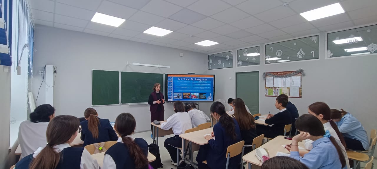 Директор Центра профориентаций Акмуллинского университета Фиданис Тимерханов познакомил ребят с условиями приема в вузы и ссузы России. Он подробно рассказал о Башкирском педагогическом университете, отметил преимущества получения педагогической профессии. Представитель Научно-образовательного центра башкирского фольклора факультета башкирской филологии Шаура Шакурова и доцент кафедры тюркской и восточной филологии Гулькай Шагапова ознакомили ребят с факультетом и рассказали о башкирском фольклоре и его изучении.
