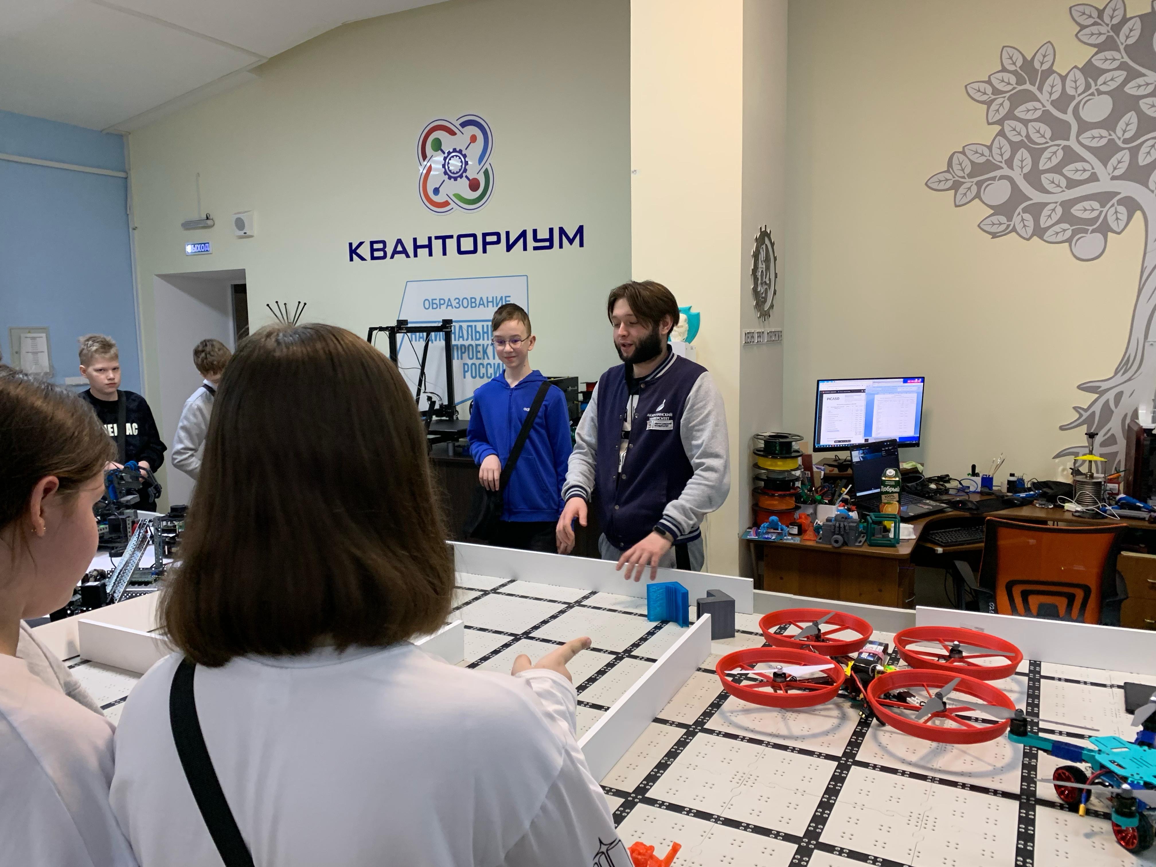 В Институте физики, математики, цифровых и нанотехнологий гостей ждало настоящее технологическое путешествие. Лаборант кафедры физики и нанотехнологий  Дмитрий Шерышев, инженер-исследователь молодежной лаборатории «Прикладная физика и технологии наносенсорики» Артур Яхин и  студент института Дмитрий Белокуров познакомили ребят с оснащением лаборатории дополненной реальности, научно-исследовательским и технологическим оборудованием, учебными лабораториями инженерной и компьютерной графики, лабораториями 3D-проектирования и печати, а также продемонстрировали образцы робототехники и беспилотных летательных аппаратов.