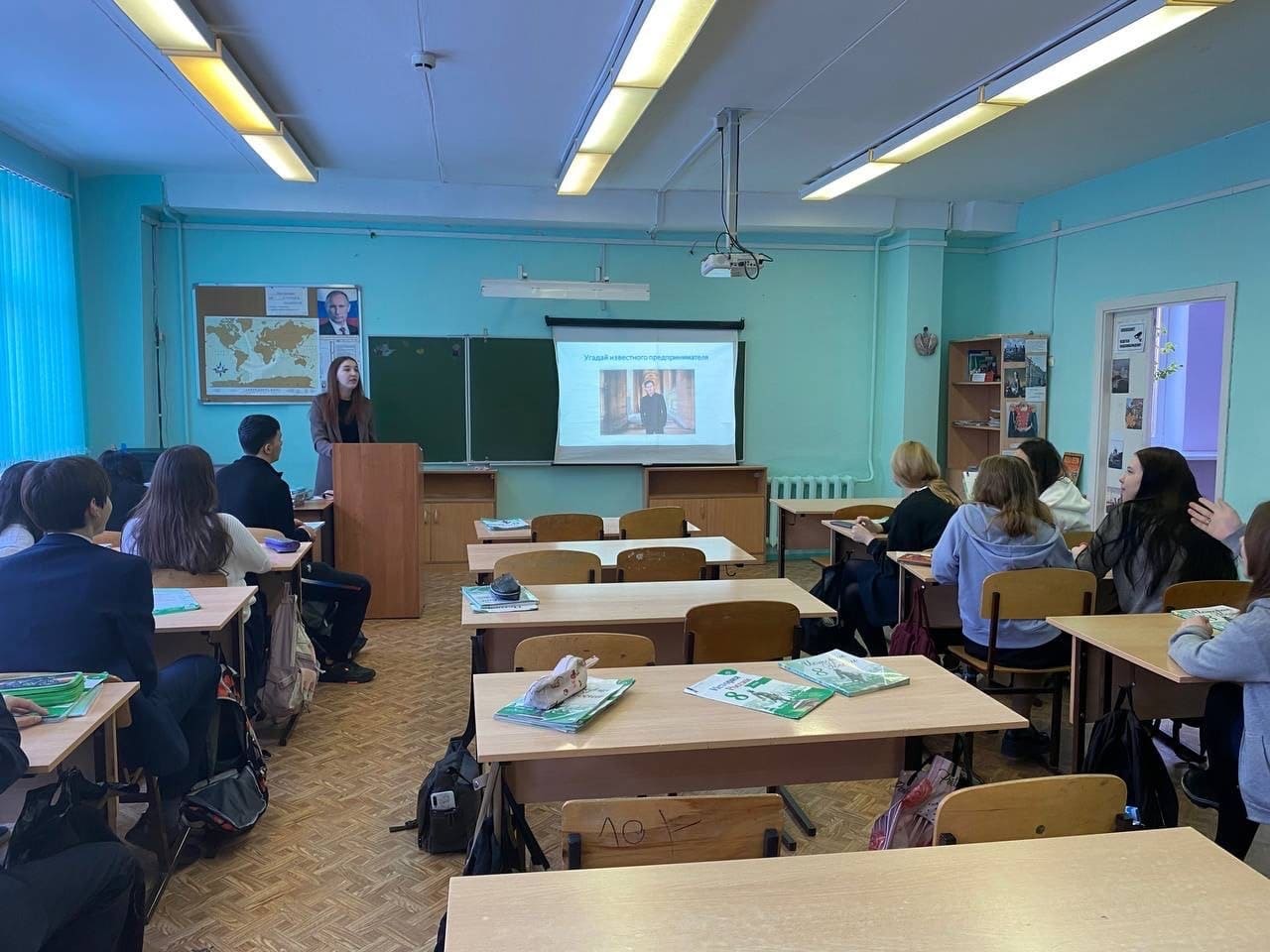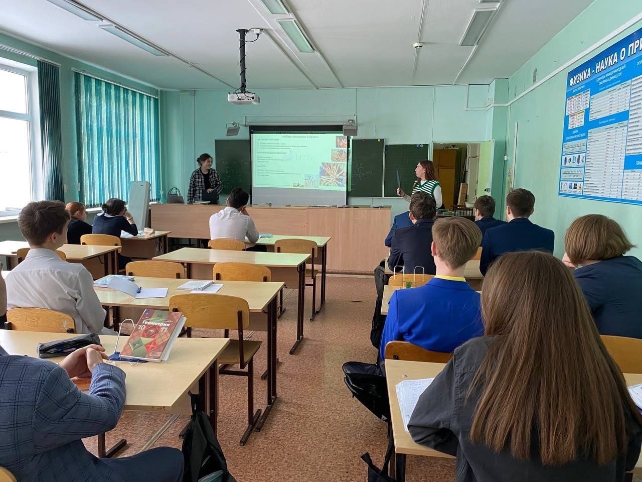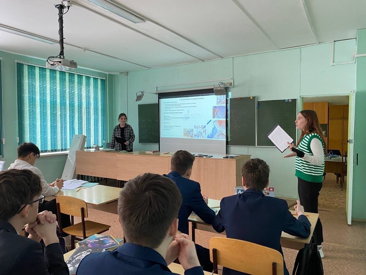 9 марта студенты Лилия Бадретдинова и Евгения Евстафьева организовали внеурочное мероприятие для учащихся 11 класса, посвященное профориентации будущих выпускников. Они познакомили учащихся с высшим учебным заведением, в котором обучаются, подробно рассказали про Институт, о направлениях подготовки, условиях, сроках обучения, а также об особенностях отдельных профессий. В своем выступлении студенты коснулись не только процесса обучения в Институте, но и познакомили ребят с творческой, внеучебной деятельностью: рассказали о том, какие дополнительные творческие и спортивные кружки могут посещать студенты, в каких мероприятиях могут раскрывать свои способности и развивать таланты, в каких сферах можно реализовать свой потенциал. Учащиеся были заинтересованы беседой, задавали волнующие их вопросы, уточняли условия поступления и проходные баллы.