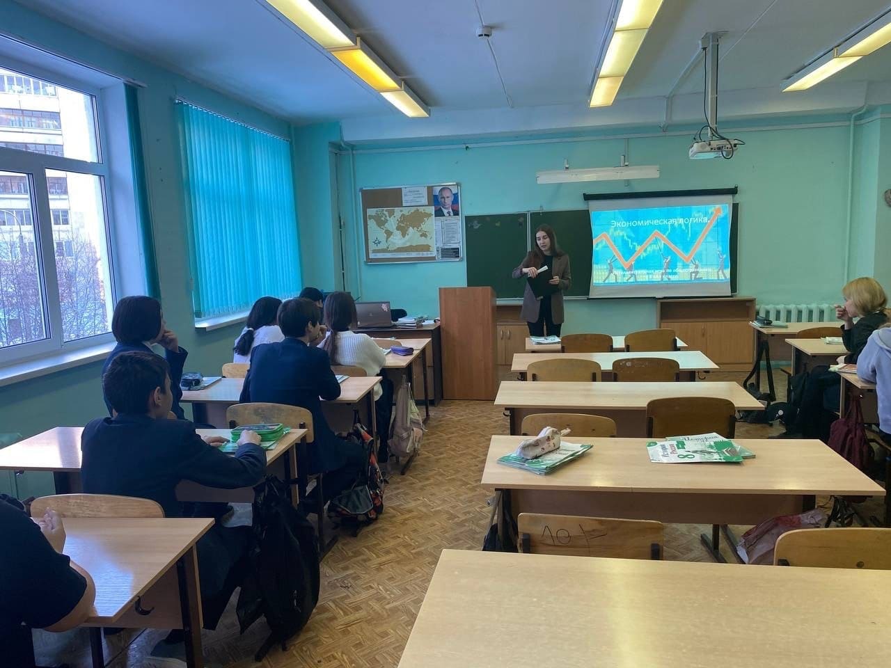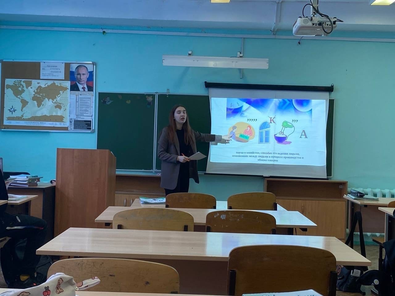 14 марта Евгения Евстафьева провела воспитательное мероприятие по обществознанию на тему «Я предприниматель» для 7 класса. Учащимся было предложено вспомнить и разобрать, кто же такой предприниматель, легко ли им быть, какими чертами должен обладать предприниматель. В ходе классного часа ребята играли в игру «Открываем свою фирму», где каждый был участником фирмы. Ребята были поделены на три группы, каждая группа – отдельная фирма. Учащиеся придумывали названия к своим фирмам, распределяли основные роли, тем самым развивая навыки коммуникации и работы в группе.