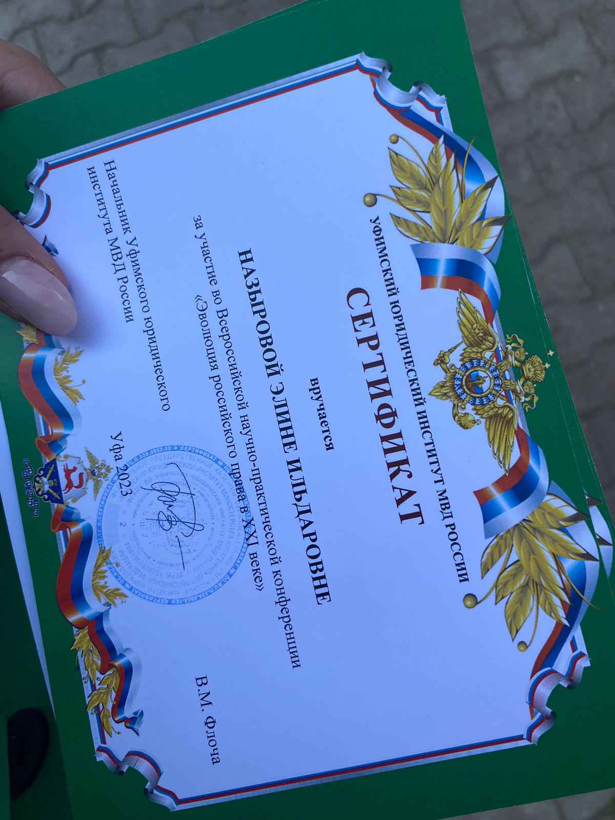 25 мая 2023 г. в Уфимском юридическом институте МВД России прошла научно-практическая конференция «Эволюция российского права в 21 веке», где приняли участие студенты Института исторического, правового и социально-гуманитарного образования, группы ПРОПД-21-21.