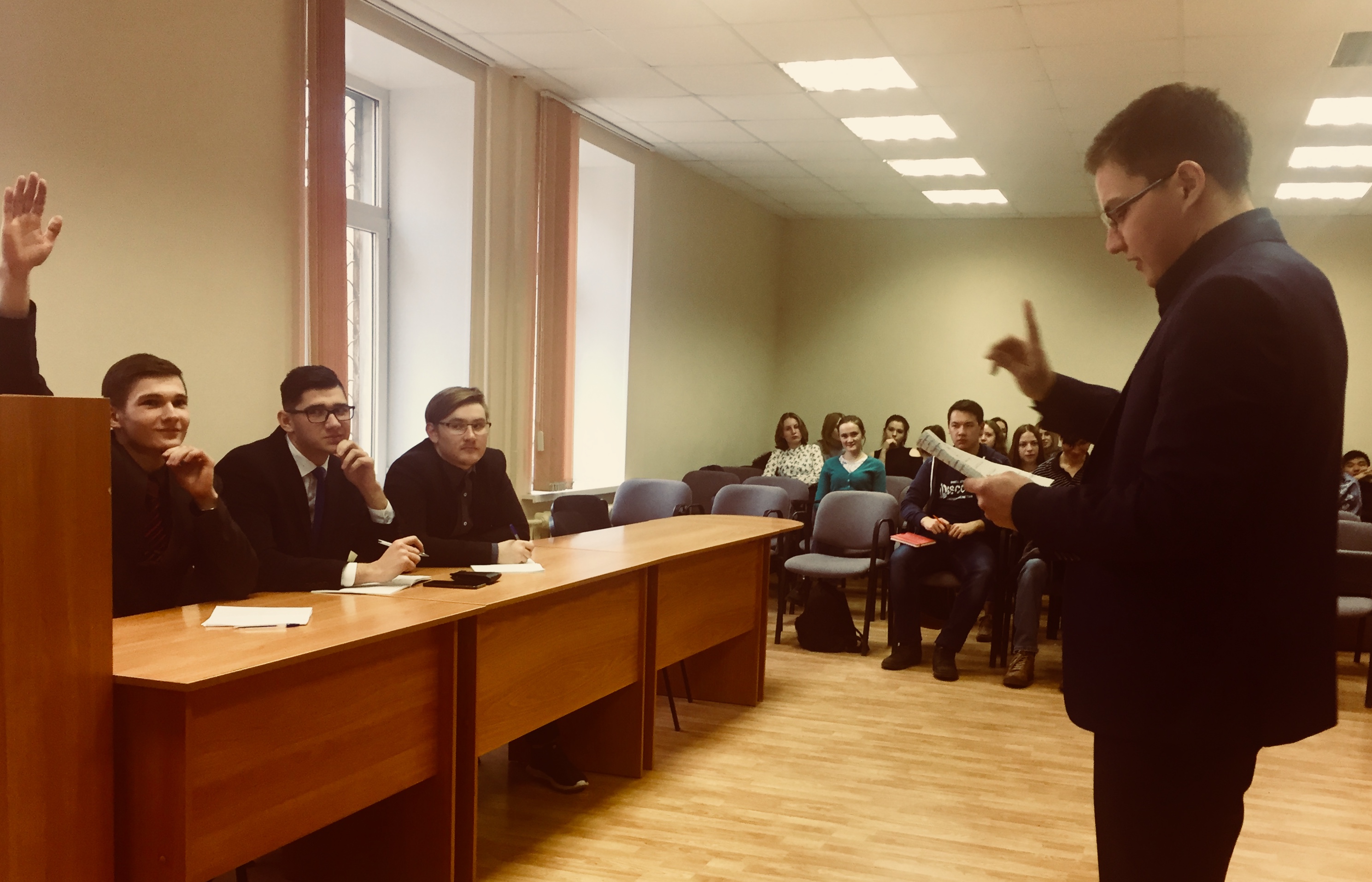 Инициаторы и организаторы дебатов – преподаватели кафедры Права и обществознания: И. И. Исхаков (к.ю.н., доцент), А. А. Амелина (преподаватель) и Р. С. Хисматов (ассистент), они же выступили тренерами команд.Темы дебатов этой встречи были актуальны для всех присутствующих. Ребята обсуждали позитивные и негативные последствия российской революции, обосновывали сущность проводимых репрессий, политики военного коммунизма и новой экономической политики. В ход шло мастерство публичных выступлений, статистические данные, цитаты из речей президента РФ В. В. Путина и министра образования и науки РФ О. Ю. Васильевой. Дебаты прошли на достойном уровне, что и было отмечено жюри, и приглашенными зрителями.