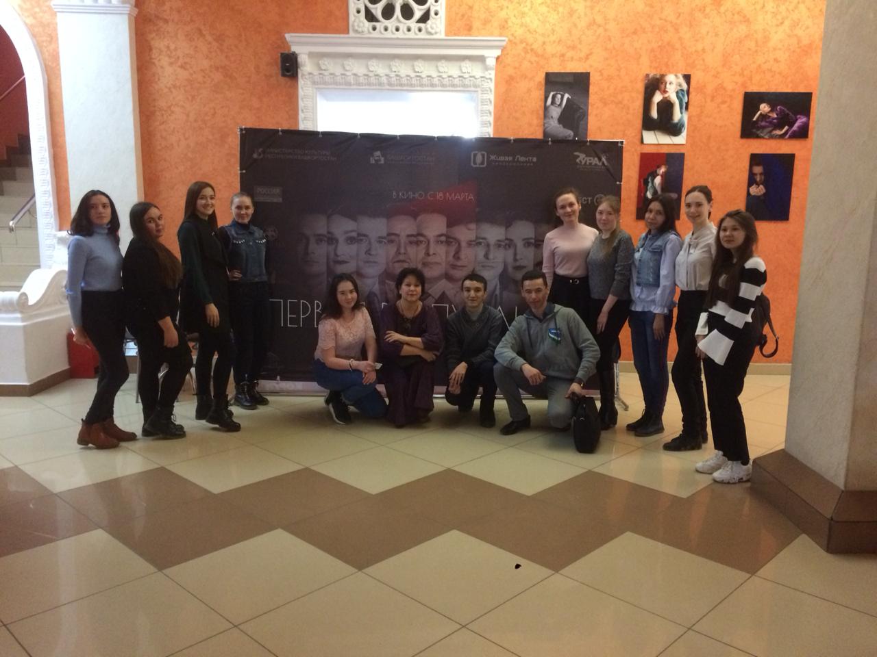 01 апреля 2019 г. группа студентов Башкирской филологии с доцентом кафедры философии, социологии и политологии Лукьяновой Р. А. посетили кинотеатр Родина и посмотрели премьерный показ фильма "Первая Республика" посвященный 100-летию Башкортостана