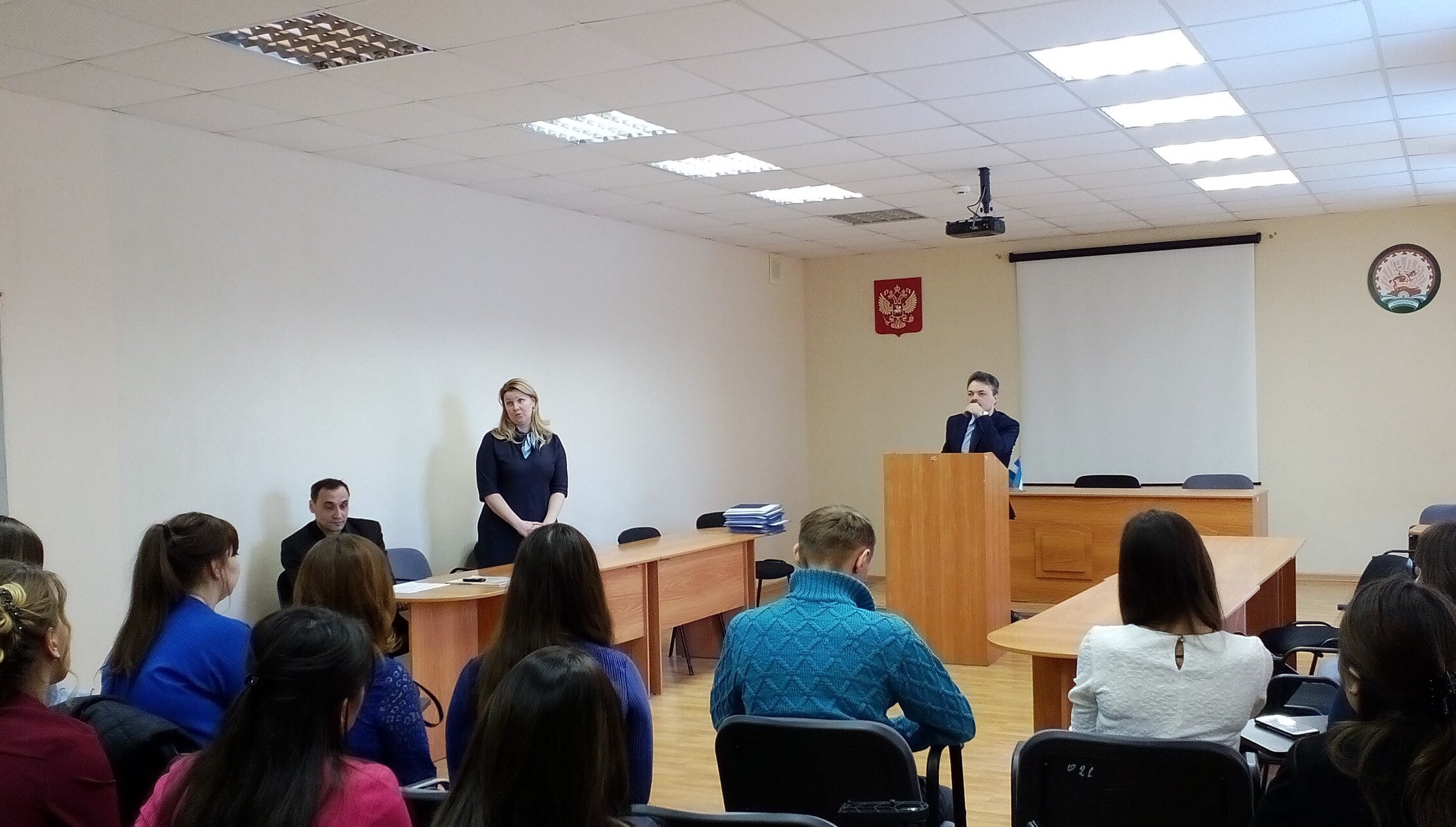 С поздравлением и напутственным словами выступила заведующая кафедрой Права и обществознания Шамигулова Оксана Алексеевна, отметив, что кафедра уже второй год выпускает специалистов по данному направлению, которые успешно работают как в организациях профессионального образования, так и в правоохранительных органах.