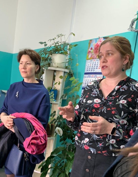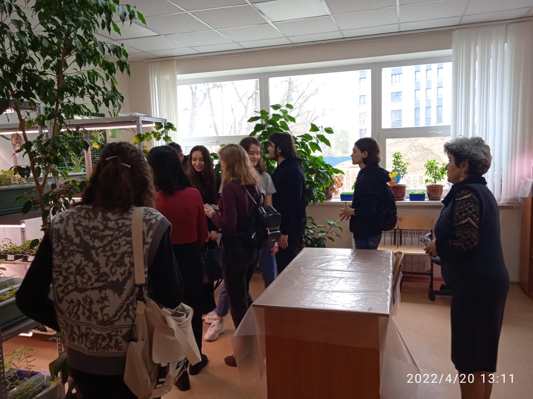 Поскольку большой группой ходить по лабораториям неэффективно, посещение сразу было спланировано так, что группа делится пополам, и вторая половина в это время идет в гости в городской эколого-биологический центр - они находятся совсем рядом друг с другом (потом наоборот). Директор ДЭБЦ Альфия Кагармановна и заместитель Венера Камиловна рассказали о работе центра и направлениях деятельности, показали учебные лаборатории и проекты ребят. Надолго задержались в оранжереи экоцентра, где произрастает множество экзотических растений. Кстати, студенты, обучающиеся по направлению, совпадающему с направлением образовательных программ, могут уже после второго курса работать в системе дополнительного образования детей параллельно с учебой.