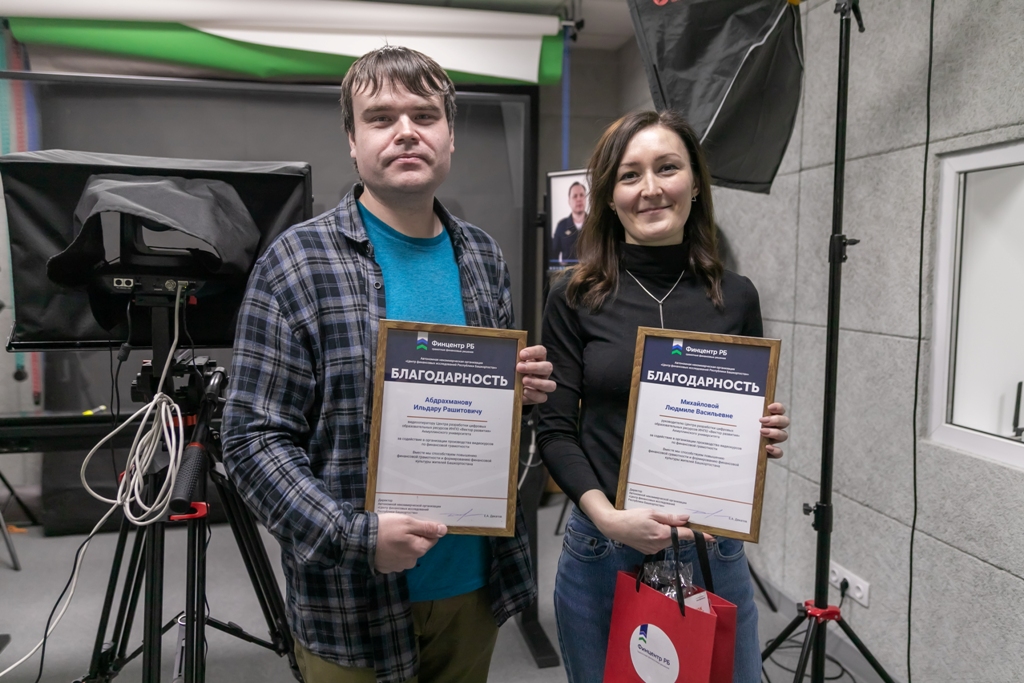 В 2024 году в этой студии совместно с Центром финансовых исследований Республики Башкортостан были записан просветительский видеокурс – 15  видеороликов, направленных на повышение финансовой грамотности и формирование финансовой культуры жителей Башкортостана. Представители Финцентра РБ вручили благодарственные письма за содействие в создании видеокурса руководителю Центра разработки цифровых образовательных ресурсов Людмиле Михайловой и видеооператору Ильдару Абдрахманову.