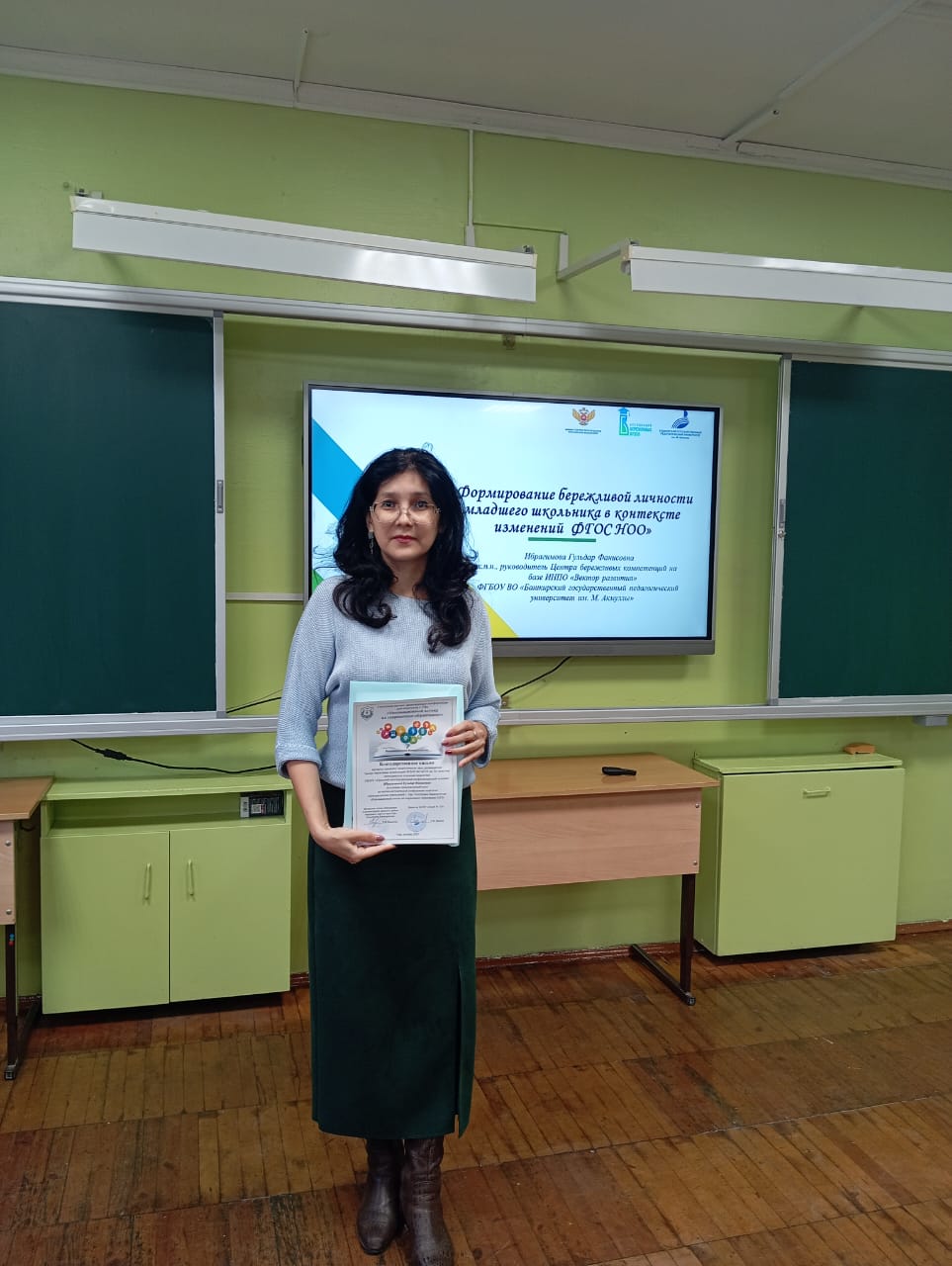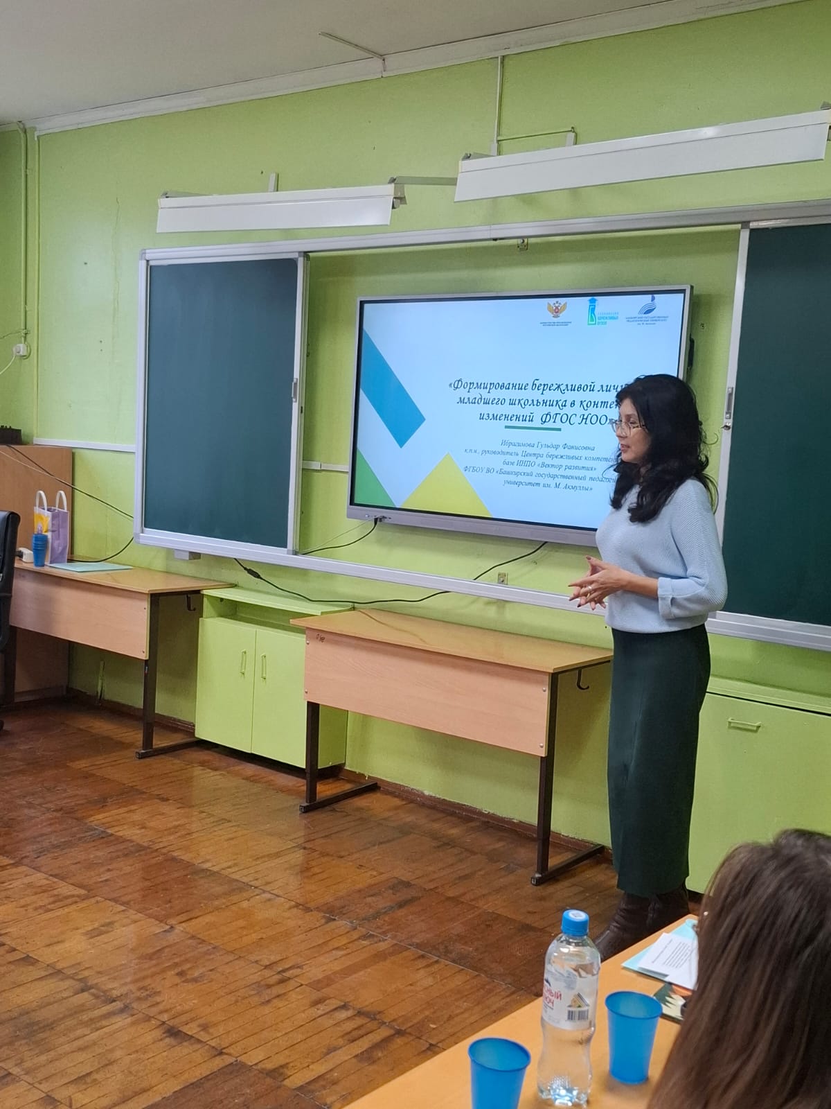 В своем выступлении Гульдар Фанисовна осветила основные направления работы Центра и ключевые аспекты реализации проекта «Бережная школа», включая особенности внедрения инструментов бережливого производства в образовательный процесс начальной школы.