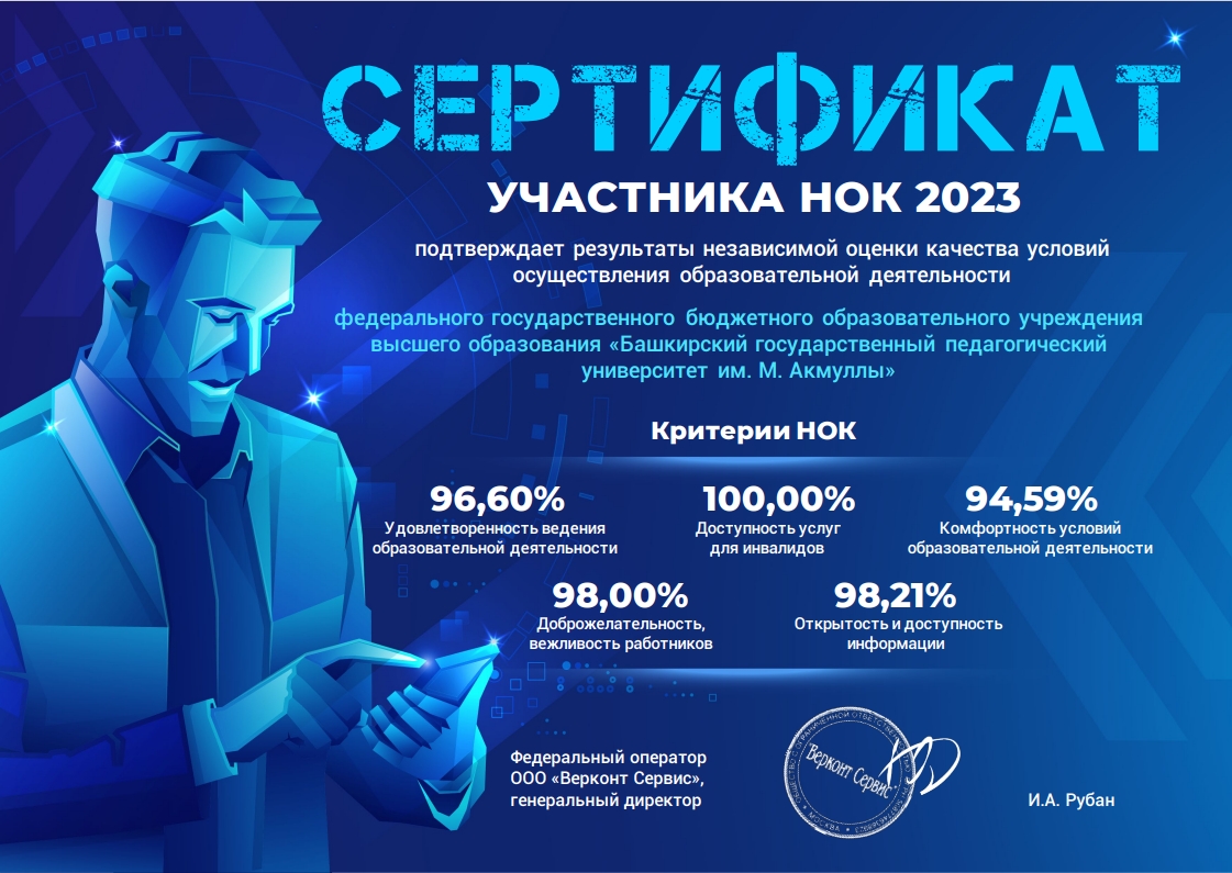 БГПУ имени М. Акмуллы получил именной сертификат независимой оценки качества