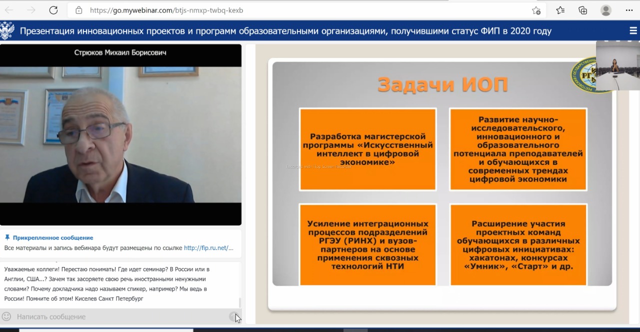 10 ноября 2021г. Минобрнауки РФ проведён вебинар на тему «Презентация инновационных проектов и программ образовательными организациями, получившими статус федеральных инновационных площадок в 2020 году». Он был посвящён обмену опытом по реализации инновационных проектов и программ, распространению инновационных моделей и практик.