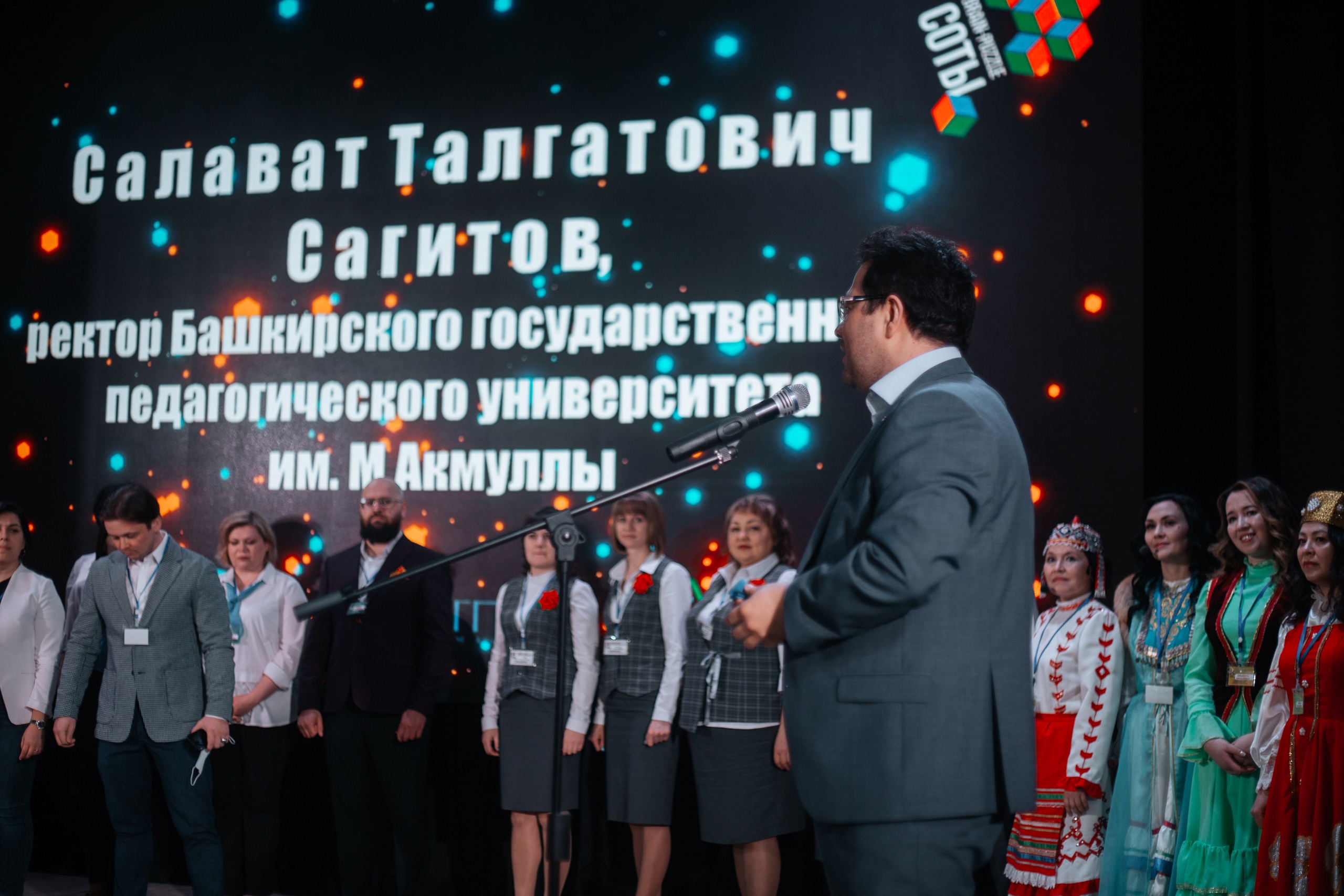 «Очень рады приветствовать вас в стенах нашего университета. Мы все прекрасно понимаем, что от учителей сегодня зависит очень много. Все будущие студенты вузов - это производные выпускников башкирского педагогического университета. Вы учите сегодня за партами тех, кто завтра пойдет в высшие учебные заведения. Именно эти ребята будут делать «будущее» в науке, в образовании, в культурной, социальной и других сферах. Когда они видят, что их учителя не просто стоят у доски, обучают, а также живут интересной жизнью, то это вдохновляет на многое», - сказал Салават Талгатович.