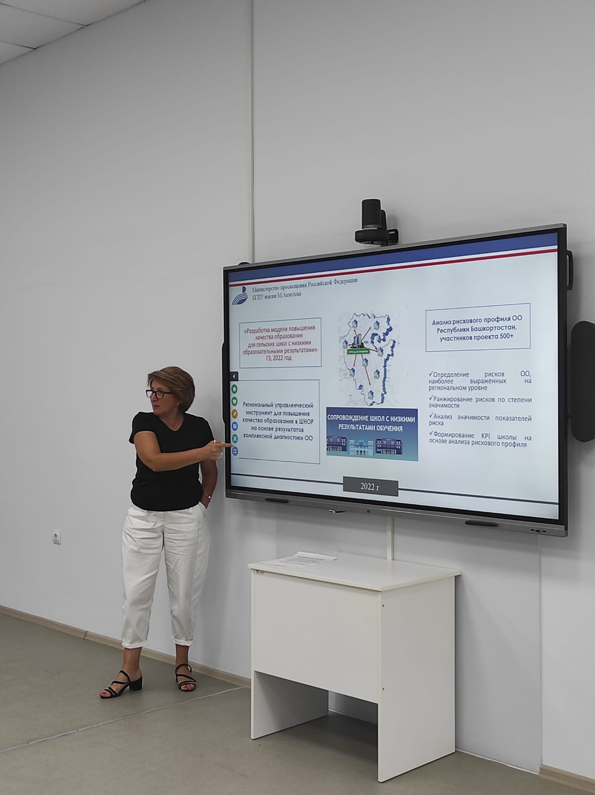 Руководитель Центра Оксана Гумерова представила результаты первого этапа исследования по анализу рисковых профилей образовательных организаций Республики Башкортостан, принимающих участие в Федеральном проекте «500+». На основе анализа были отобраны наиболее значимые региональные риски для дальнейшего сопровождения.
