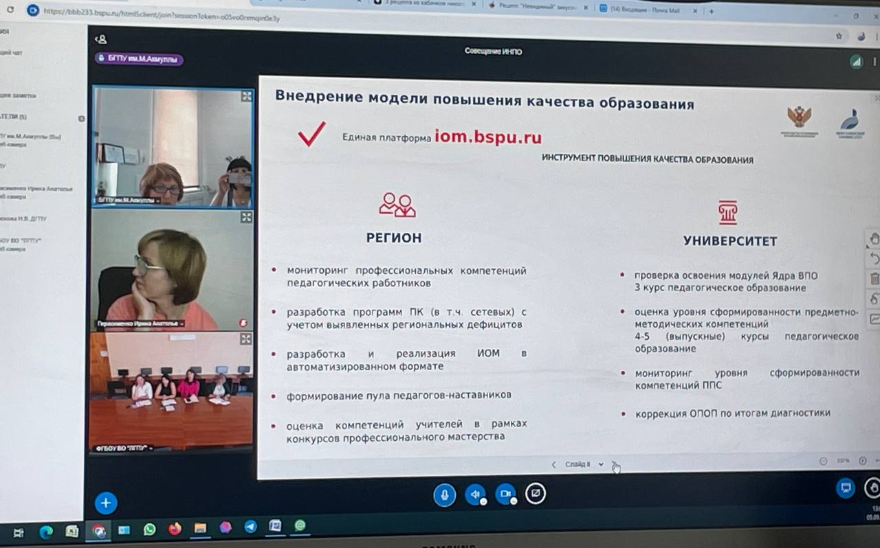 10 сентября 2024 года состоялась очередная встреча участников ресурсного центра методического сопровождения повышения качества образования по обмену опытом реализации эффективных практик в рамках деятельности педагогического университета. Сотрудники Акмуллинского, а также Донецкого и Луганского педагогических университетов обсудили особенности системы ДПО.