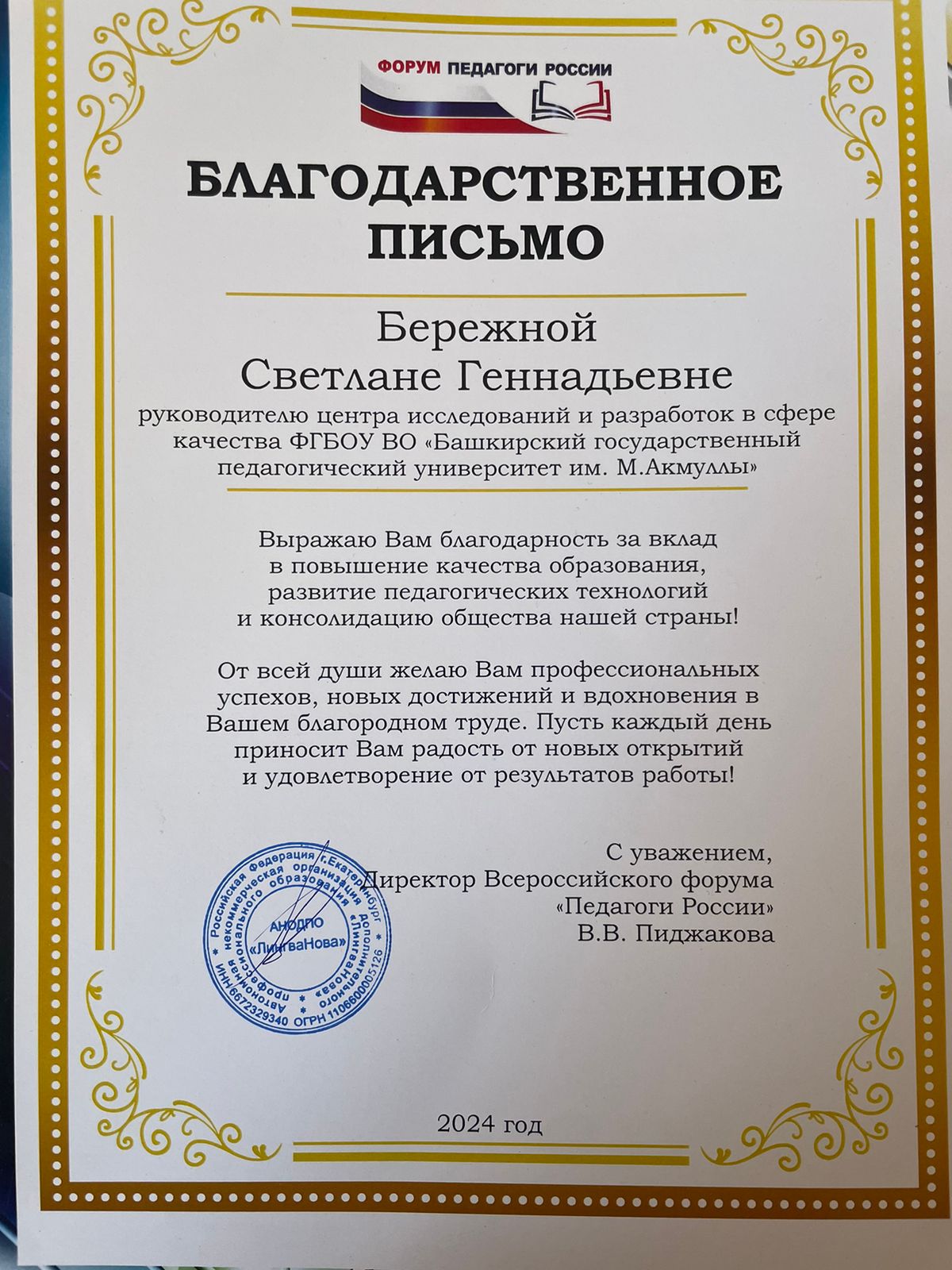 26 и 27 сентября в Республике Башкортостан впервые прошел Форум "Педагоги России", объединивший  педагогов дошкольного и общего образования, а также управленцев в сфере педагогики. Ключевой темой форума стало обсуждение стратегии и практики в образовании для развития личности и общества. Открытие форума было ознаменовано приветственным словом Исаргаковой Лиды Сагитовны, заместителя Председателя Общественной палаты Республики Башкортостан.