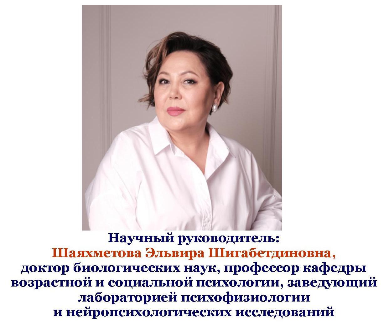 Факультет психологии поздравляет студентов с достижениями и выражает огромную благодарность научному руководителю Шаяхметовой Эльвире Шигабетдиновне, доктору биологических наук, профессору кафедры возрастной и социальной психологии, заведующему лабораторией психофизиологии и нейропсихологических исследований.
