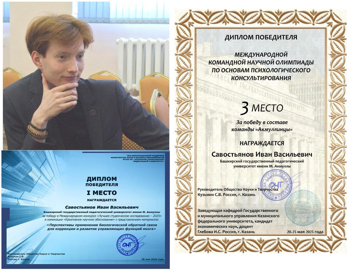 • Иван Савостьянов – ­I место в номинации «Креативное научное обоснование» за работу «Перспективы применения биологической обратной связи для коррекции и развития управляющих функций мозга»;