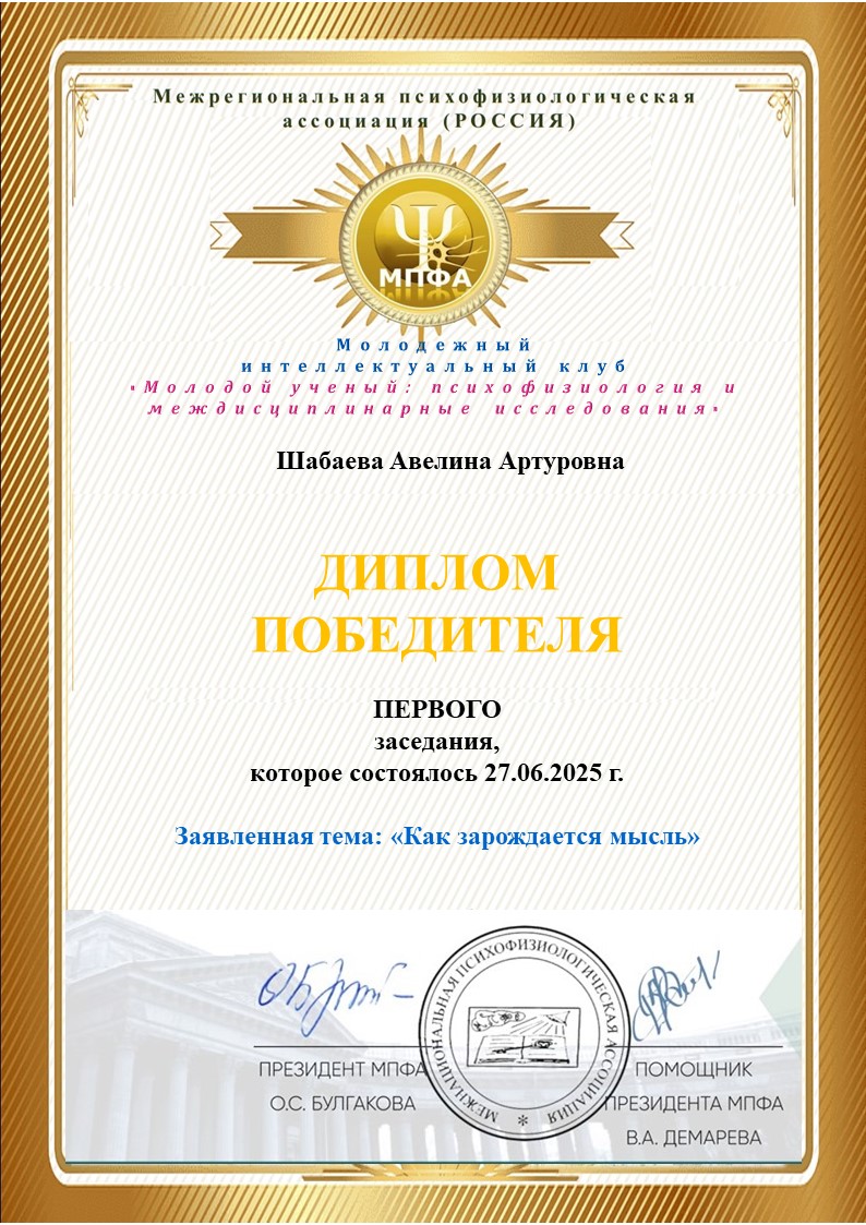 27 июня в дистанционном формате состоялось первое заседание молодёжного интеллектуального клуба "Молодой учёный: психофизиология и междисциплинарные исследования", по теме: "Как зарождается мысль". Мероприятие было проведено Международным научным психофизиологическим содружеством (г. Санкт-Петербург).