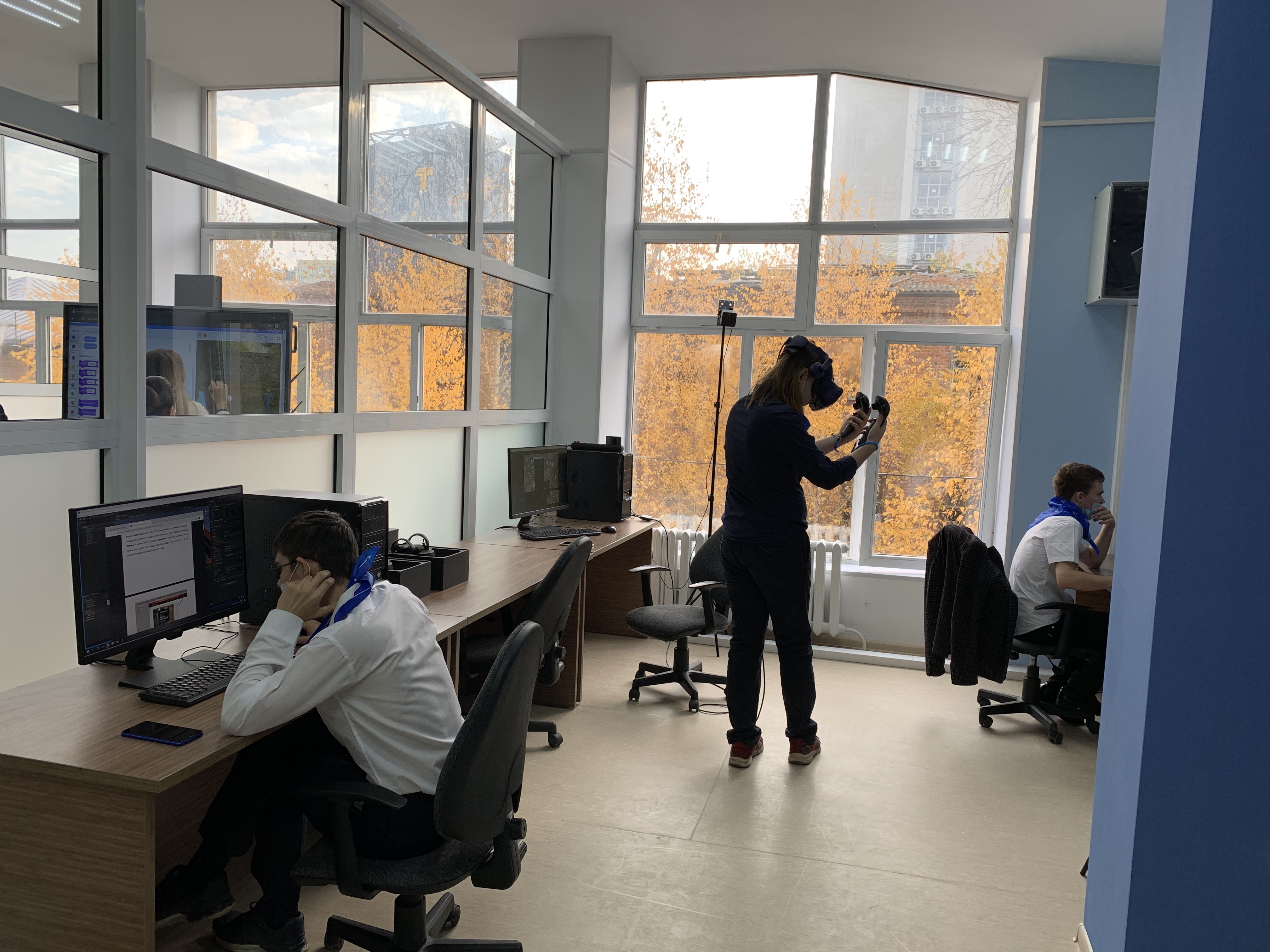 В рамках мероприятия участники круглого стола в первой половине дня 15 октября ознакомились с деятельностью Акмуллинского университета в том числе посетили Институт физики, математики, цифровых и нанотехнологий. Работу новой площадки Центра Роста Цифровых компетенций представила профессор кафедры прикладной информатики, д.т.н. А.С. Филиппова и студенты первого и третьего курса направления подготовки 09.03.03 Прикладная информатика: Полянская Ксения, Мамалимов Тимур, Сидоров Евгений, Муксинов Владислав, Закиров Денис, Мартынов Дмитрий, Батталова Илюза, Гришин Антон. Ребята показали площадки по направлению робототехника, виртуальная реальность, 3D моделирование.