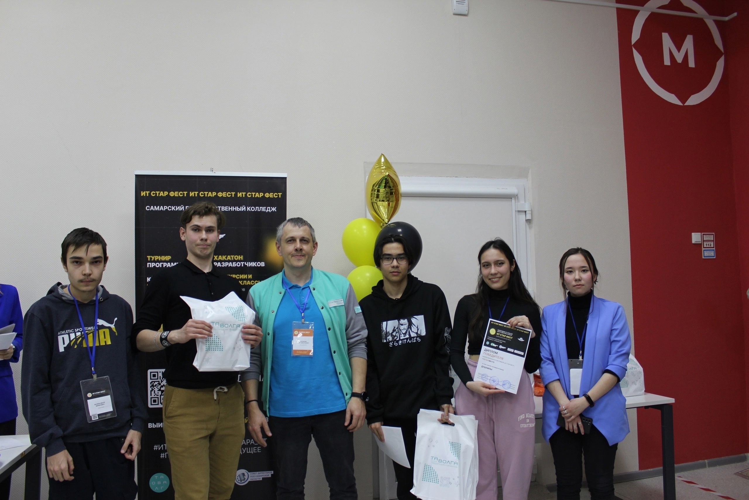 С 21 - 24 марта на площадке Самарского  Государственного Колледжа прошел международный фестиваль информационных технологий - IT Start Fest. В рамках фестиваля состоялся хакатон, в котором приняли участие наши студенты, обучающиеся на 2 курсе направления "Прикладная информатика". В рамках конкурса командой был предложен кейс по разработке справочной системы наград Самарской области, который принес им почетное третье место.