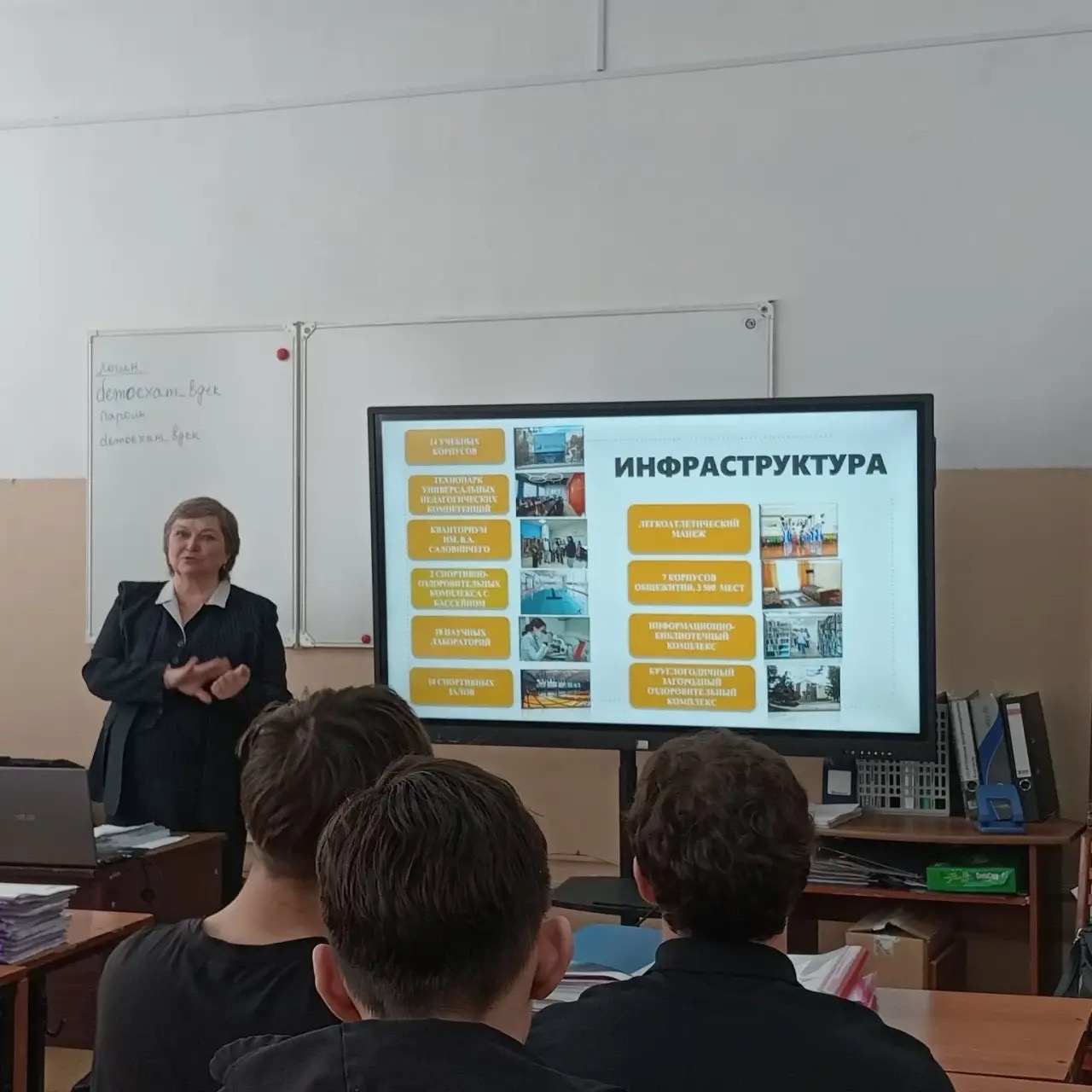 В ходе встречи Елена Павловна подробно рассказала о структуре вуза, преимуществах поступления на направления подготовки кафедры информационных технологий, а также о перспективах, которые открываются перед выпускниками педагогического университета. Особое внимание было уделено условиям приема в 2025 году, срокам подачи документов и возможностям, которые университет предоставляет студентам для научного и творческого развития.