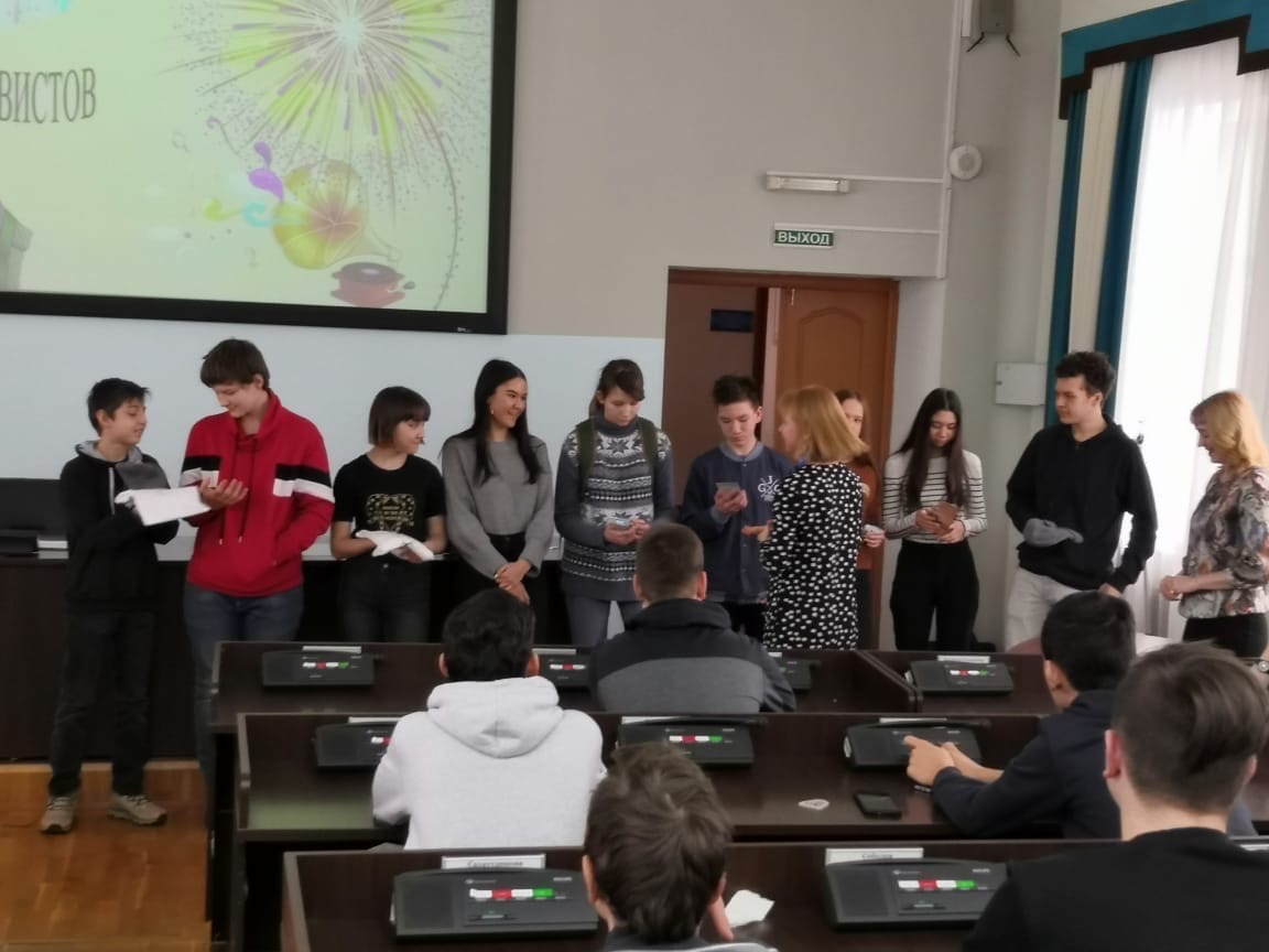 1 февраля 2020 года на базе ИФОМК преподаватели кафедры русского языка А.Е. Родионова, Ю.В. Ошеева, О.В. Тугузбаева провели очередную университетскую субботу "Говорим по-русски о серьезном, играя" для учащихся 7-9 кл. школ г. Уфа. В ходе мероприятия ученики приняли участие в квесте, который подготовили и провели волонтеры, студенты 3 и 5 курсов: Шайхилова Екатерина, Белоусова Анастасия, Давлеткужина Джамиля, Индиенкова Мария, Сенина Анастасия, Копылова Екатерина, Нуриева Диляра, Малашкина Анастасия, Ибрагимова Эльза, Салимбаева Екатерина, Журавлёва Евгения. Мероприятие вызвало у школьников большой интерес, прошло весело и увлекательно. Самые активные участники были награждены памятными призами.