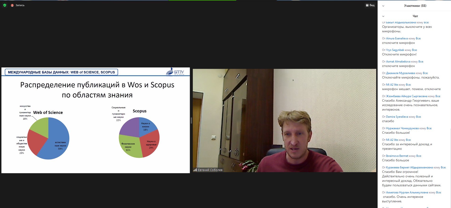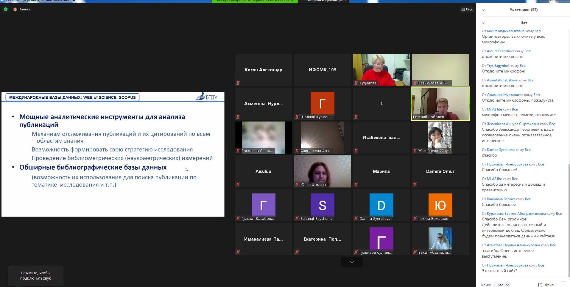 Начальник управления научной работы Евгений Валерьевич Соболев подробно рассказал о международных журналах ВАК, Scopus, Web of Science, национальных (РИНЦ), предметных базах данных. Евгений Валерьевич напомнил слушателям-студентам об этапах создания научной статьи.