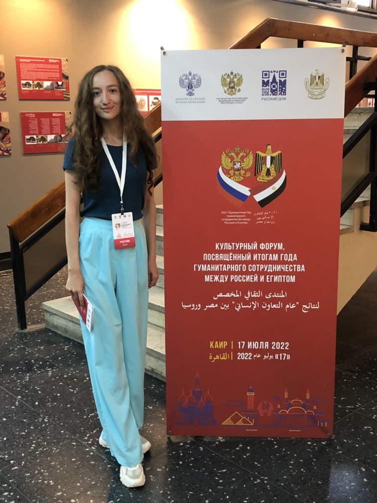 Для детей наших соотечественников и сотрудников российского посольства магистрант Акмуллинского университета провела интерактивные занятия по популяризации русского языка, географии, литературе, истории и культуре России. Также она участвовала в Культурном форуме, посвящённом итогам Года гуманитарного сотрудничества между Россией и Египтом.