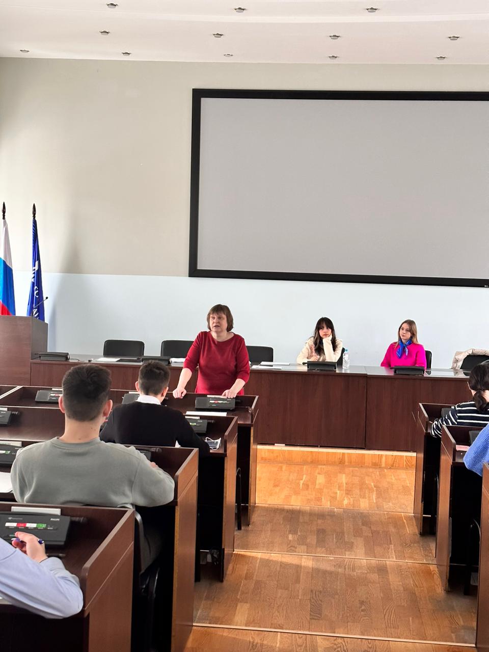 Перед школьниками выступила заведующая кафедрой русского языка, теоретической и прикладной лингвистики профессор Гульнара Франгилевна Кудинова с рассказом об ИФОМК и с мультимедийной презентацией. Студенты-волонтёры рассказали ребятам о своей жизни и учебе в БГПУ.