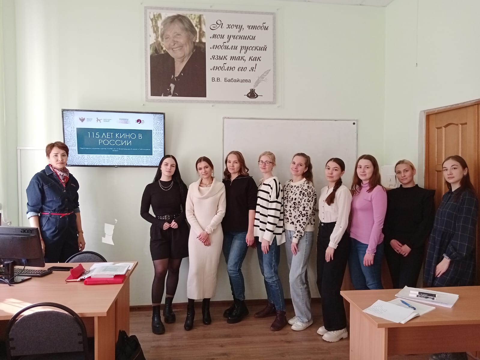 В рамках дискуссии на тему «По ту сторону экрана. 115 лет кино в России», организованной старшекурсниками И. Тойгильдиной, К. Виноградовой и кураторами групп 1 курса О.В. Тугузбаевой и Ю.С. Фоминой, обучающиеся обсудили проблемы отечественного кинематографа. Студенты отметили, что российский кинематограф является частью национальной и общей культуры, он имеет свой «золотой фонд», признанный во всем мире. Сегодня кинопроизводство в России продолжает активно развиваться, при этом современные кинокартины передают традиционные для нашего народа ценности, значимые для объединения нации, затрагивают «вечные» вопросы, связанные с осмыслением действительности и культурно-исторического наследия. Важно помнить, что в процессе просмотра фильмов человек формирует не только свою зрительскую культуру, но и ценностное отношение к миру, национальное самосознание и гражданскую позицию, что в целом важно для самореализации личности.