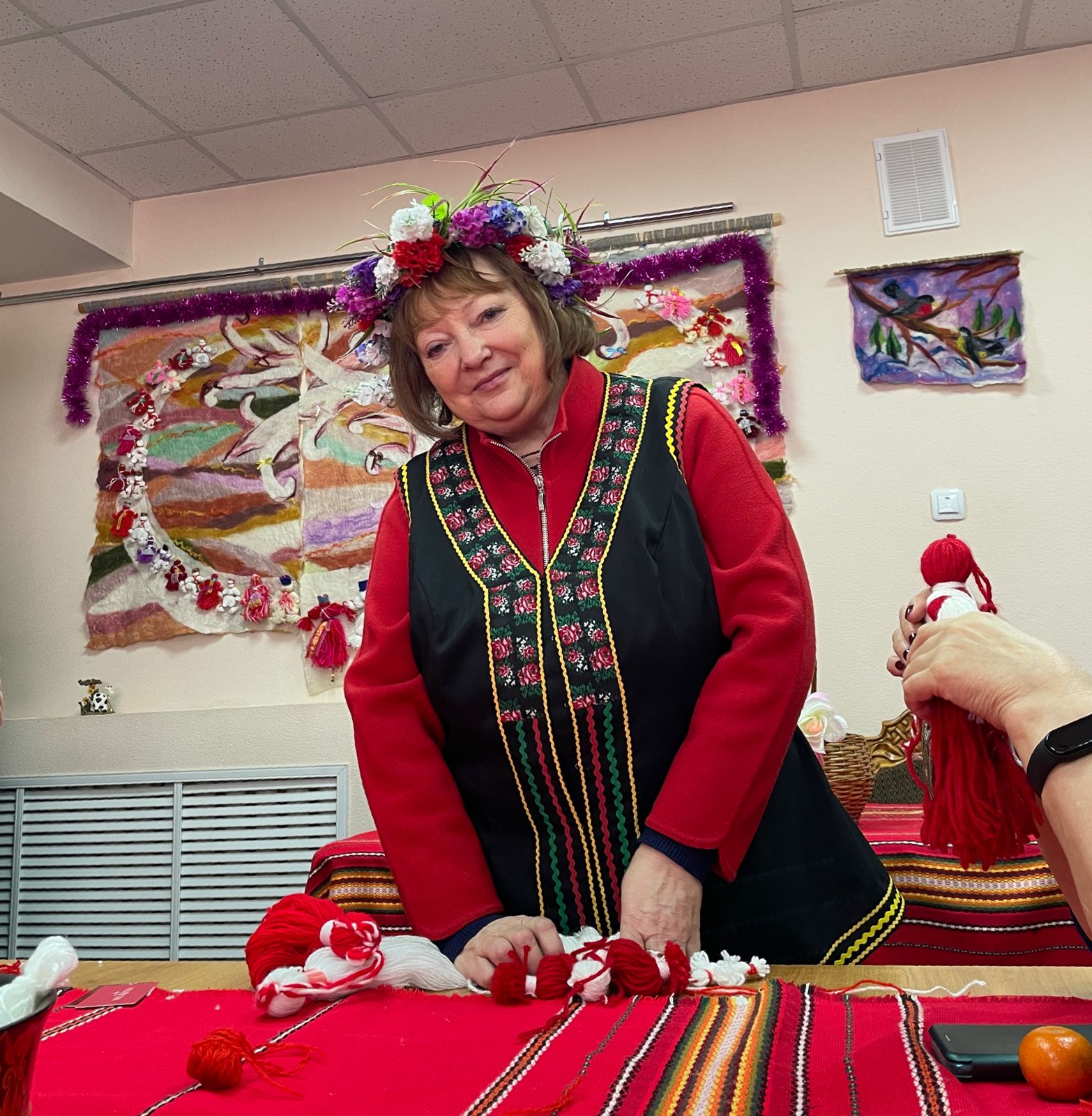 Татьяна Борисовна интересно и увлекательно рассказала о прекрасной болгарской традиции дарить мартеницы родственникам и друзьям. При вручении мартеницы должны говорить «Честита Баба Марта», обняться и поцеловаться. Праздник символизирует конец зимы и начало весны, жизни, счастья и здоровья.
