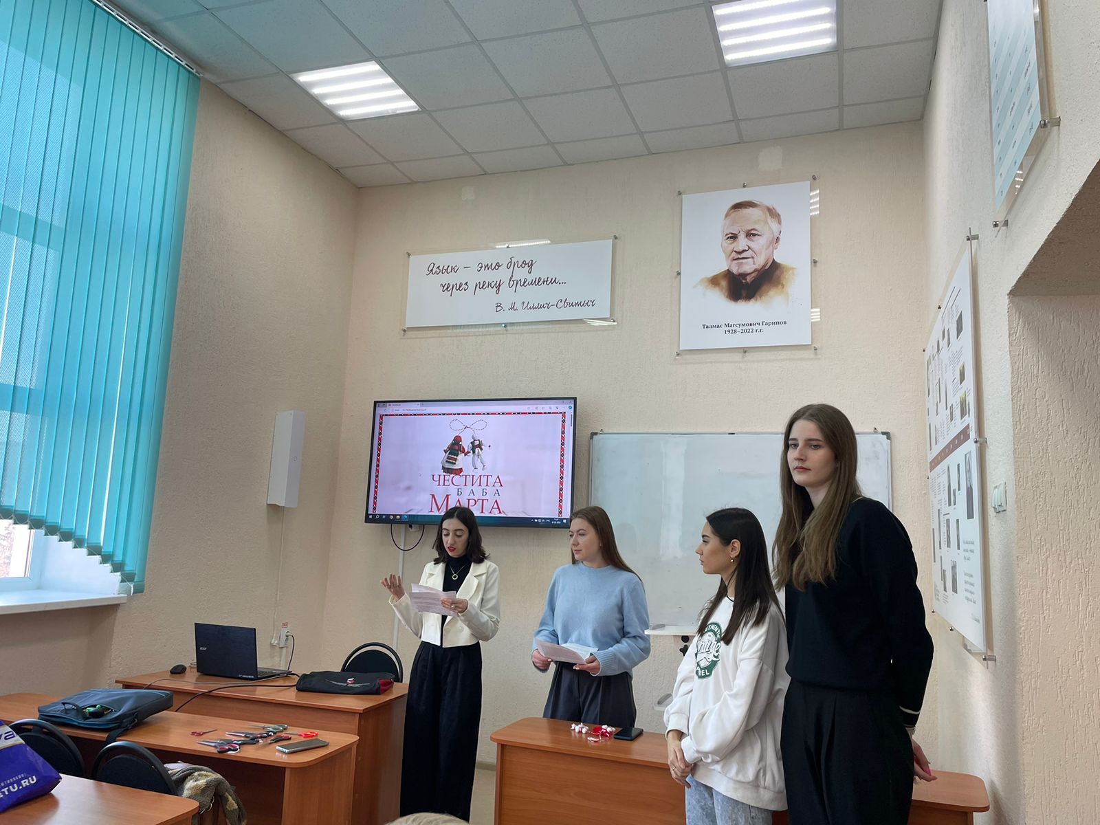 1 марта студенты отделения отечественной филологии Башгоспедуниверситета, изучающие болгарский язык, под руководством доцента кафедры русского языка, теоретической и прикладной лингвистики Гузель Курбангалеевой провели мастер-класс по изготовлению мартениц. Старшие курсы поздравили первокурсников с началом весны, подарили им мартенички и научили их изготавливать эти украшения своими руками.